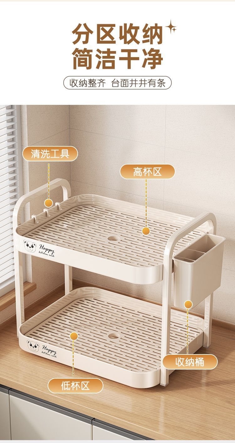 가정용 컵 보관함 데스크탑 워터 컵 컬렉션 랙 식탁 트레이 티 컵 랙 더블 레이어 배수 컵 랙스토어 가기