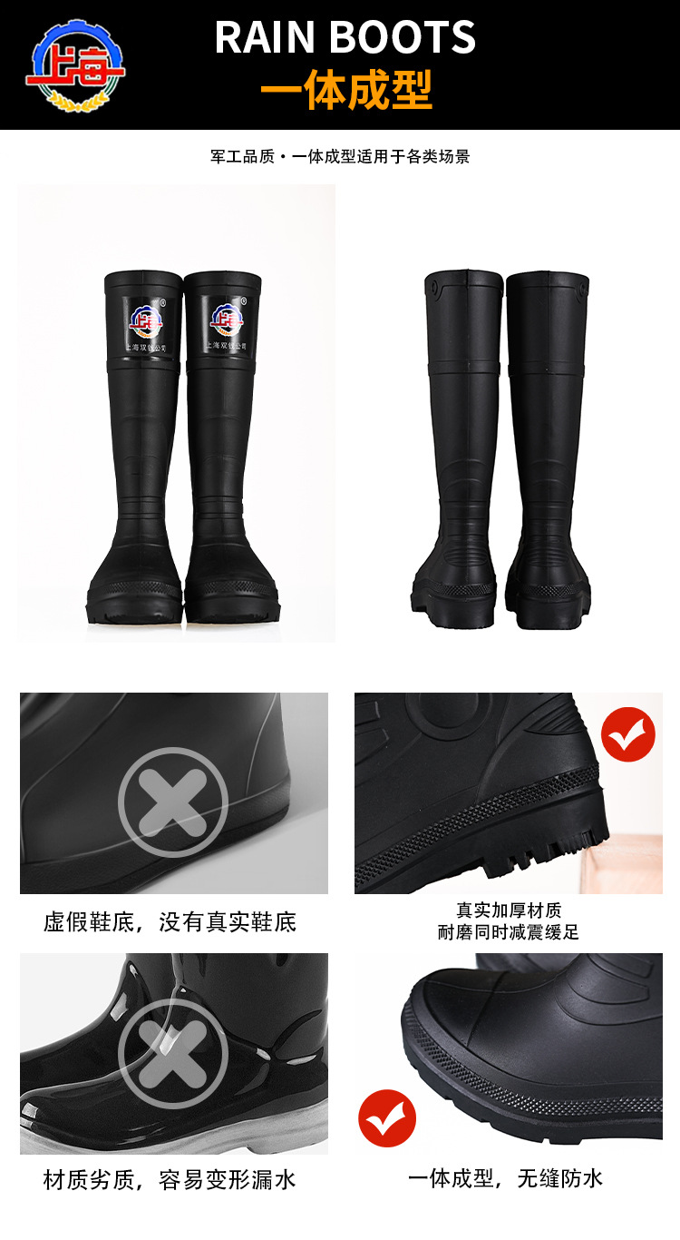 상하이 Shuangqian 장화 883 남성용 하이탑 장화 미끄럼 방지 미끄럼 방지 남성용 신발 커버 워터 슈즈 건설 현장 건설 고무 신발