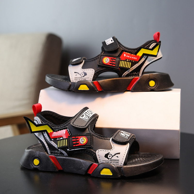 PLUS 소년 샌들 여름 2025 방수 미끄럼 방지 통기성 스포츠 샌들 남자 초등 및 중등 학교 소년 해변 신발스토어 가기