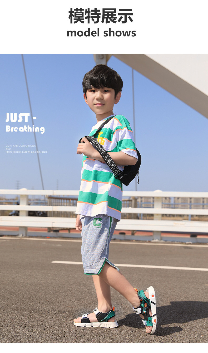 PLUS 소년 샌들 여름 2025 방수 미끄럼 방지 통기성 스포츠 샌들 남자 초등 및 중등 학교 소년 해변 신발