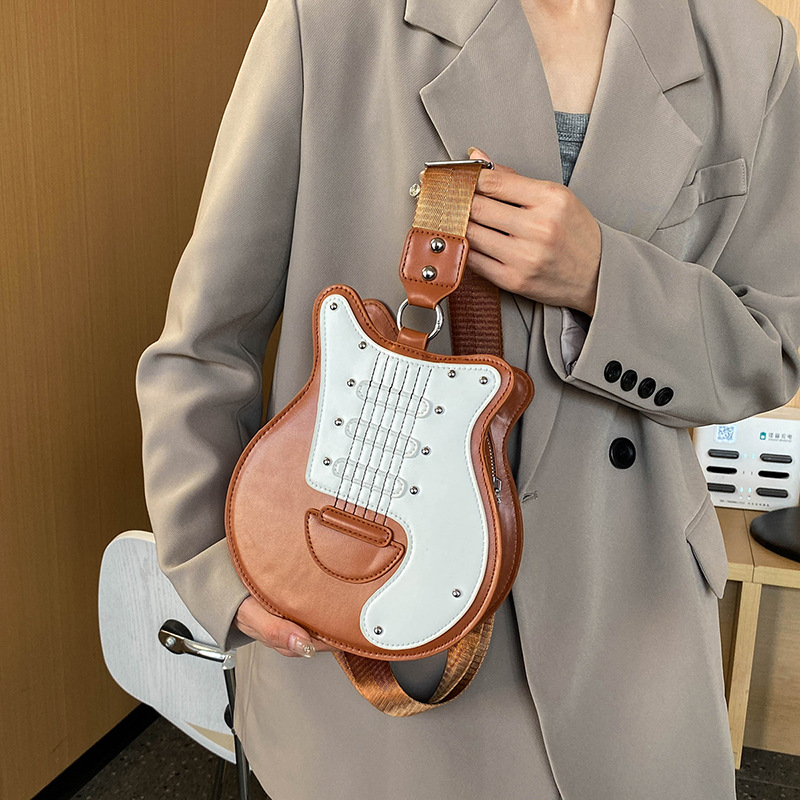 개인화 된 캐주얼 봄 새로운 기타 모양의 어깨 가방 여성 통근자 틈새 디자인 하이 엔드 슬링 가방