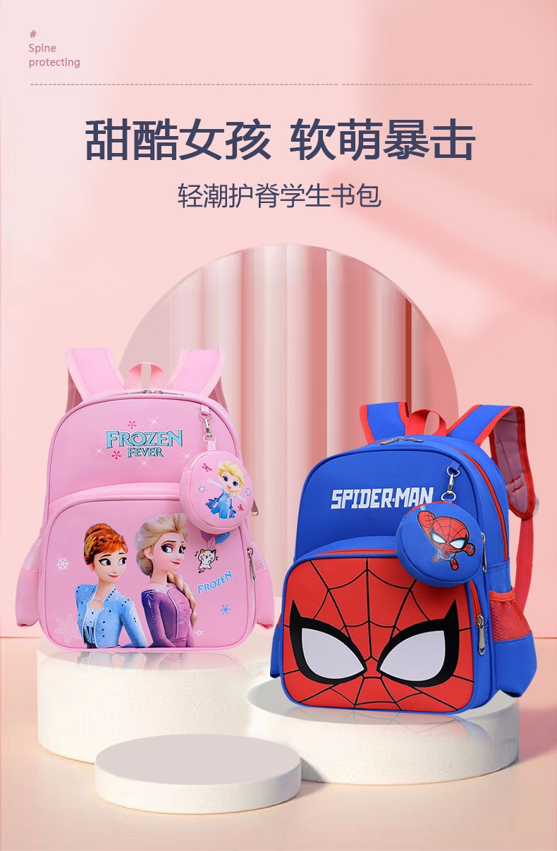 초등학생 책가방, 어린이 배낭, 새로운 만화 유치원 1~3학년 경량 배낭, 국경 간 아기 가방