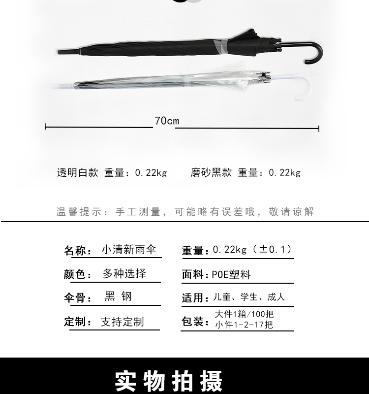 투명 우산 긴 손잡이 우산 작은 우산 수동 우산 귀여운 높은 감각 스몰 사이즈 사이버 유명 투명 우산 서리 화이트 엔터프라이즈 뼈
