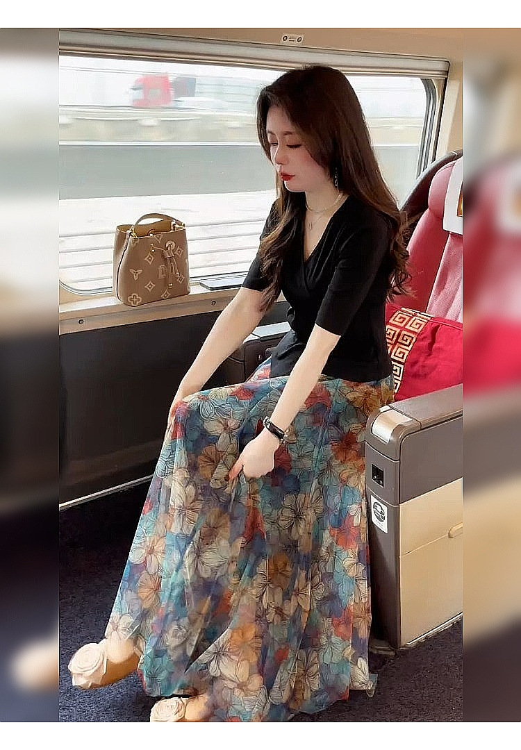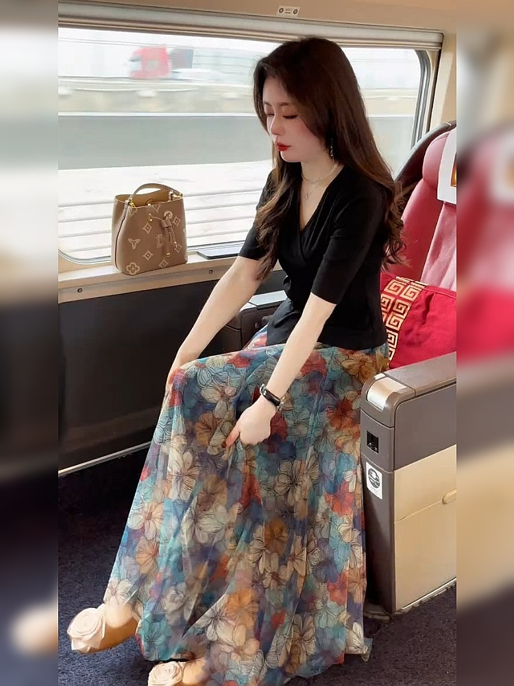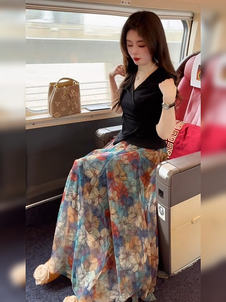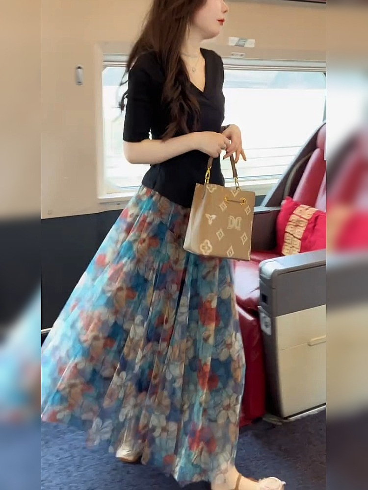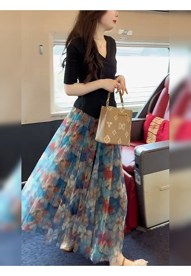 작은 아름다운 슬리밍 요정 펄럭이는 A-라인 스커트 배 그림 2 피스 스커트 2025 새로운 스타일스토어 가기