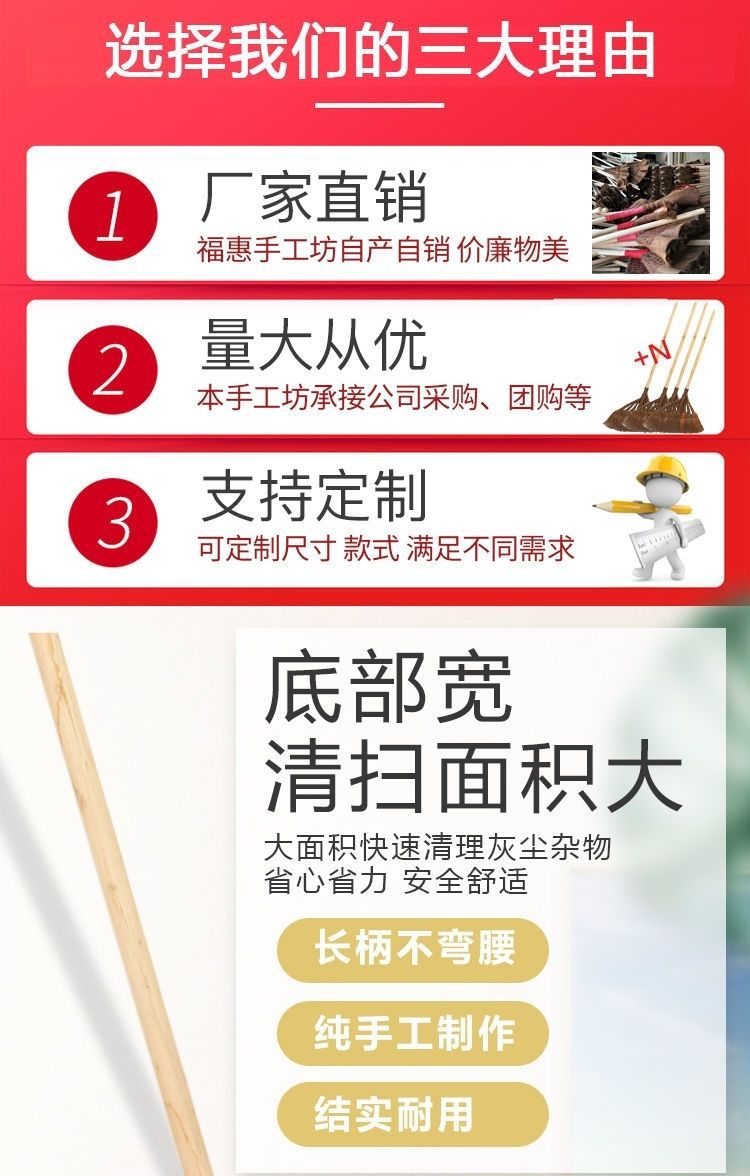 가정용 갈색 빗자루, 구식 빗자루, 학교 공장 작업장, 단일 야외 내구성 강모 빗자루, 단단한 나무 Han