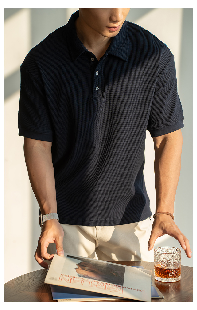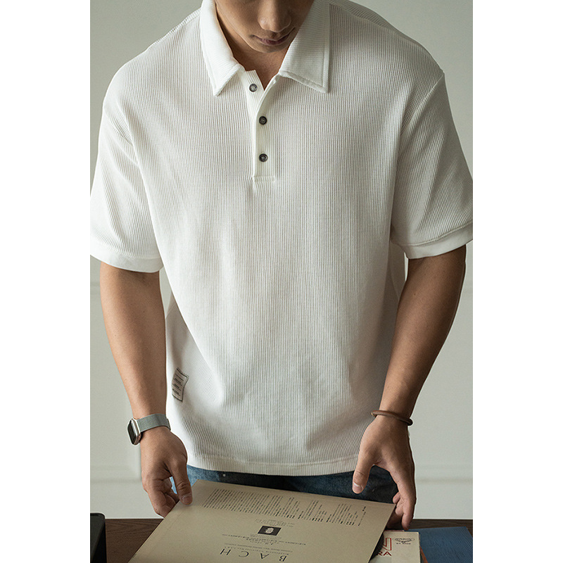 와플리 질감 통기성 수분 흡수 POLO 셔츠 남자 2025 년 여름 새 옷깃 통근 캐주얼 올 매치 반팔 티셔츠