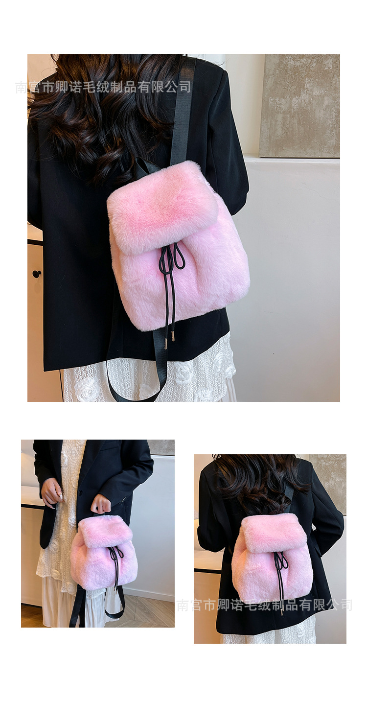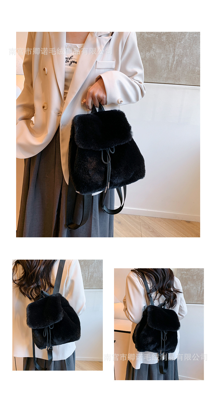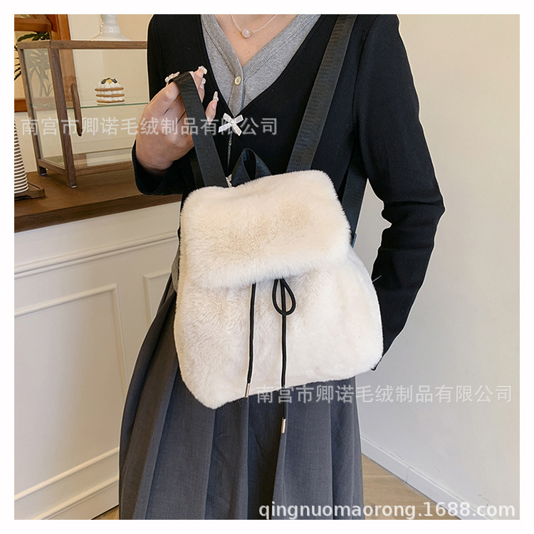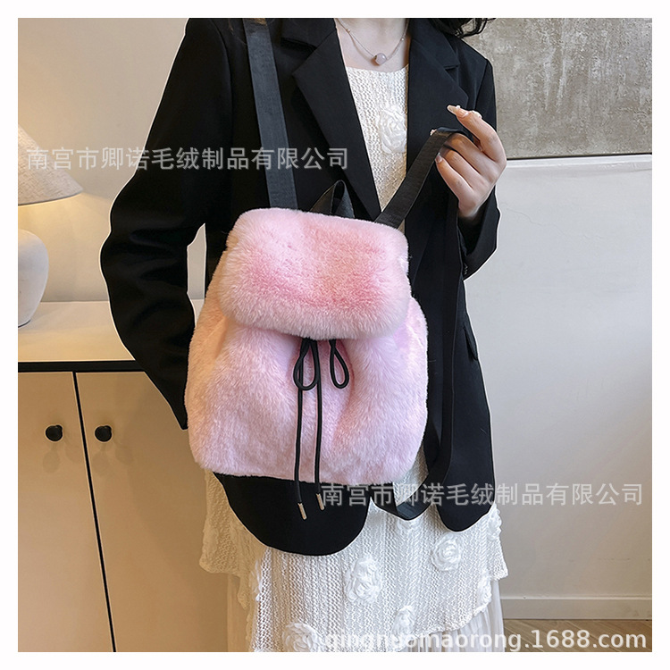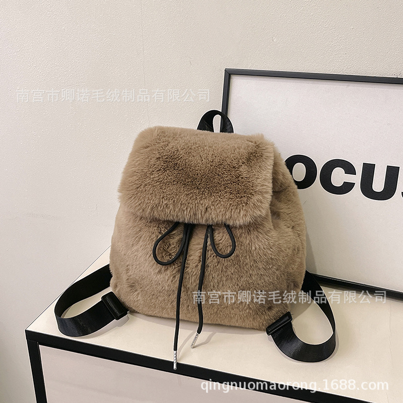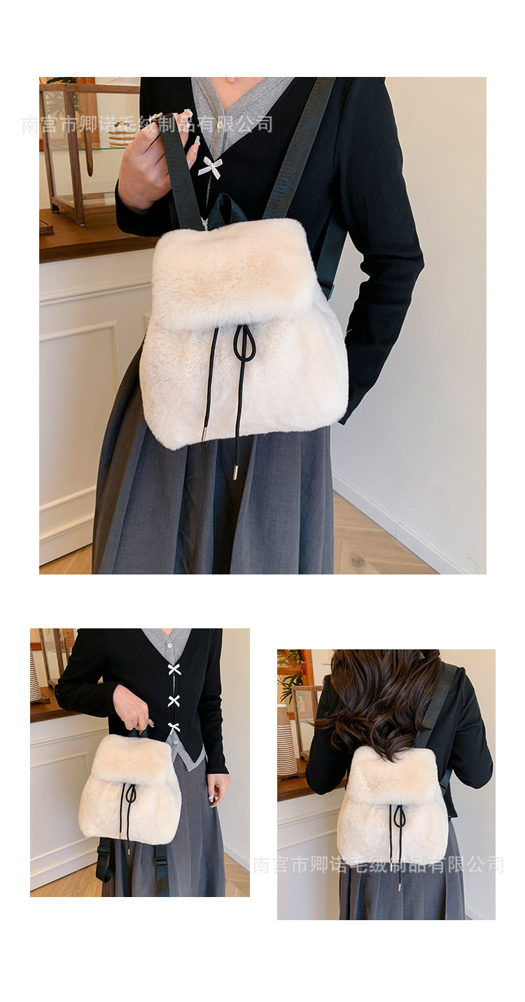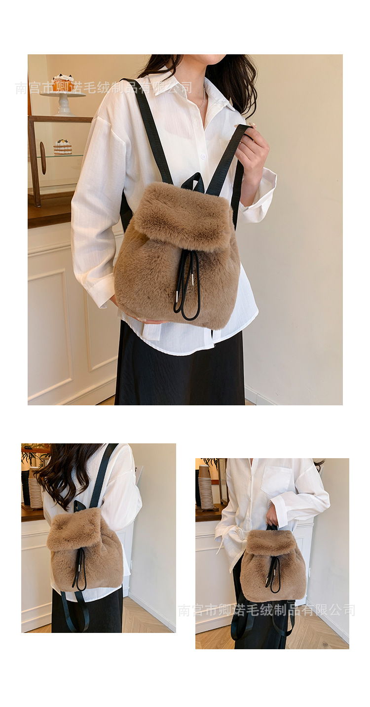 학생과 소녀를위한 크로스 보더 플러시 배낭 모조 토끼 모피 배낭 대용량 졸라 매는 끈 레오파드 프린트 솔리드 컬러 다용도스토어 가기