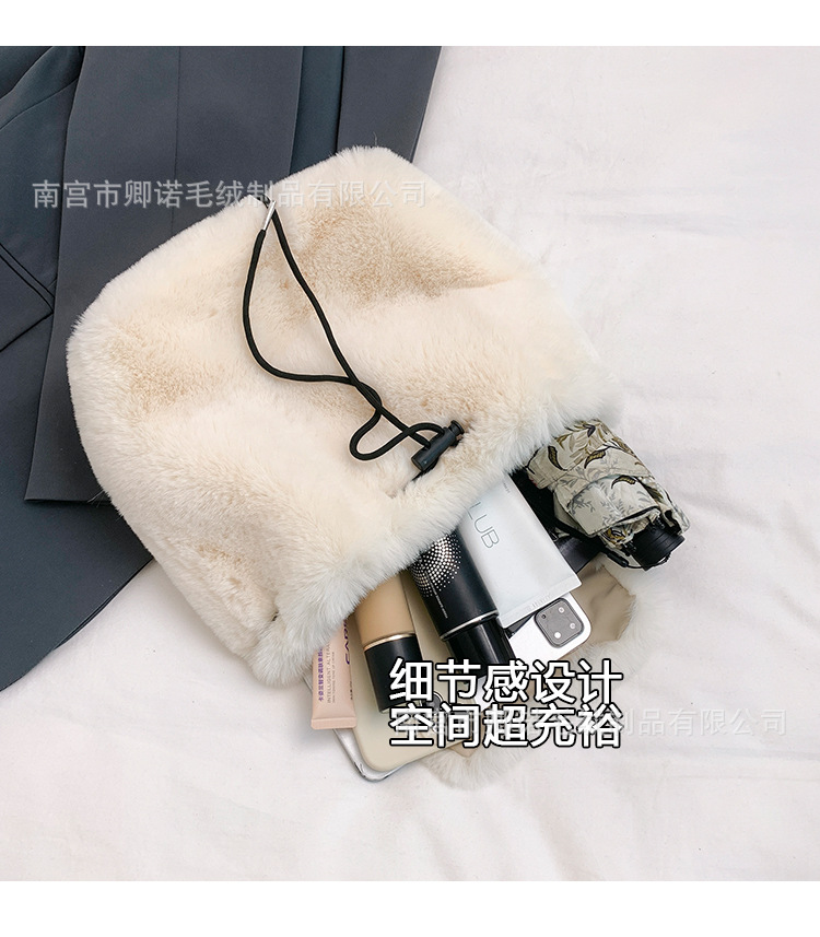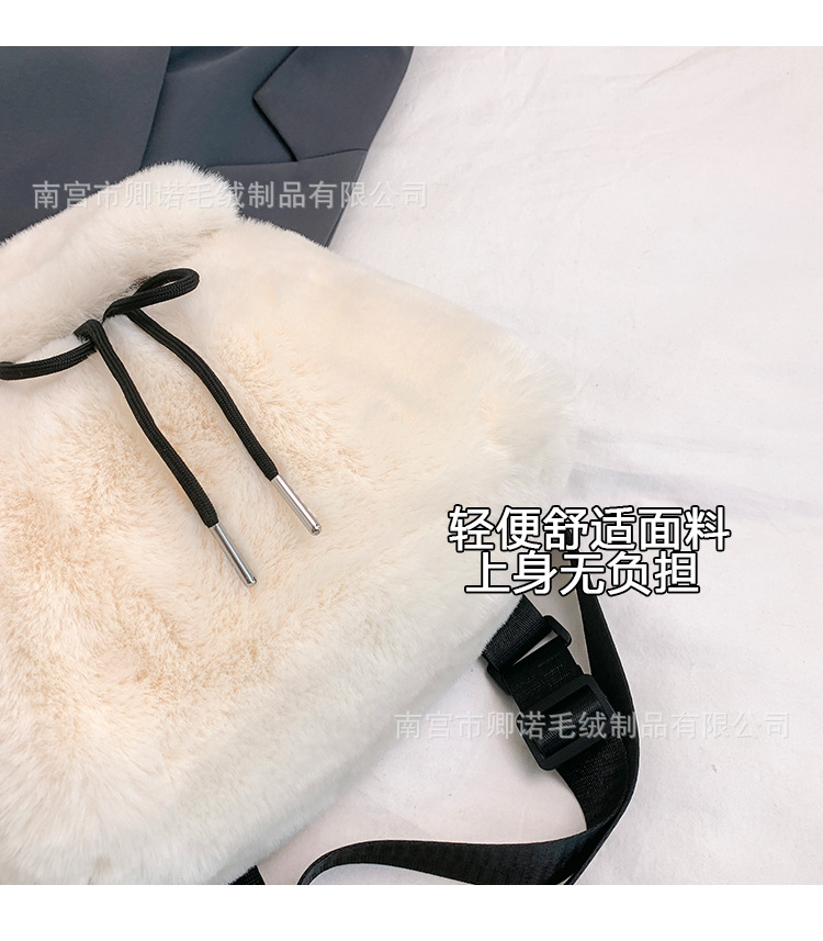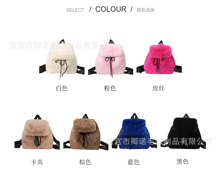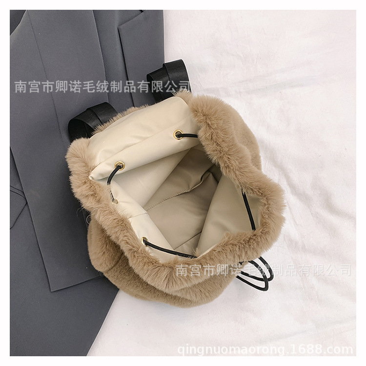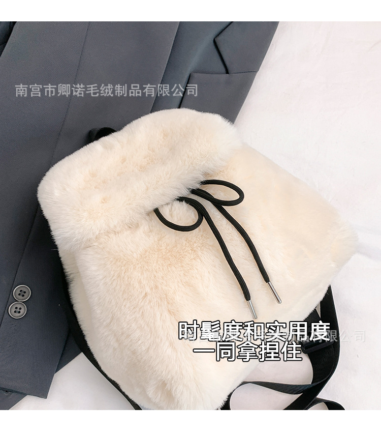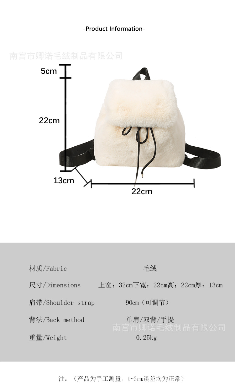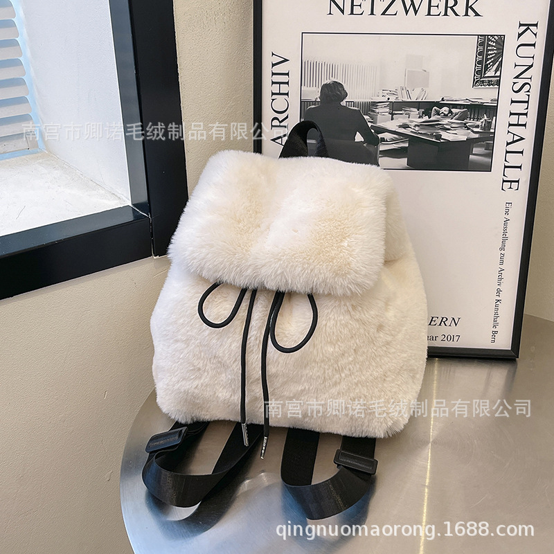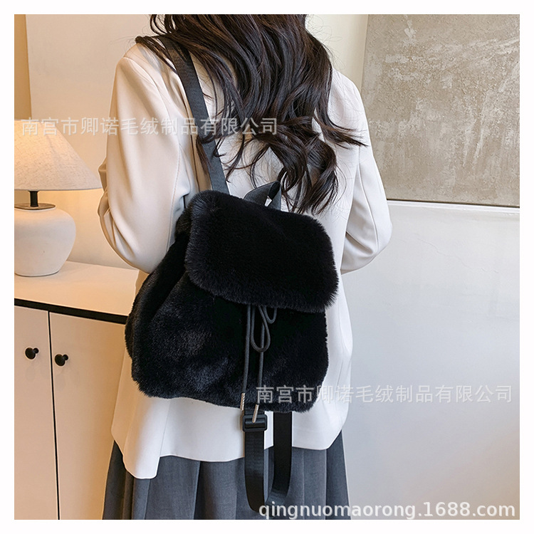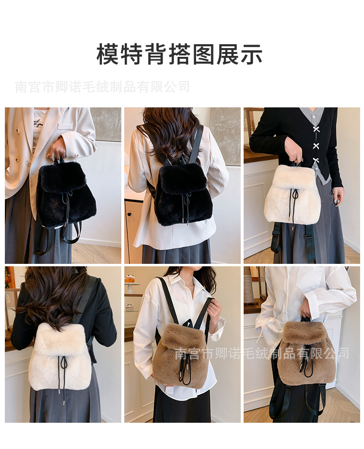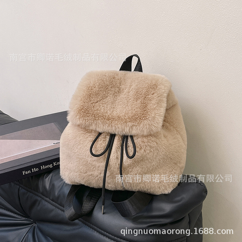 학생과 소녀를위한 크로스 보더 플러시 배낭 모조 토끼 모피 배낭 대용량 졸라 매는 끈 레오파드 프린트 솔리드 컬러 다용도스토어 가기