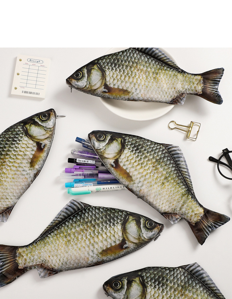 창조적 인 시뮬레이션 Carassius Carassius Carassius 성격 재미 소금에 절인 생선 연필 가방 신선한 바다 물고기 물고기 모양의 연필 가방 쉐이크 톤스토어 가기