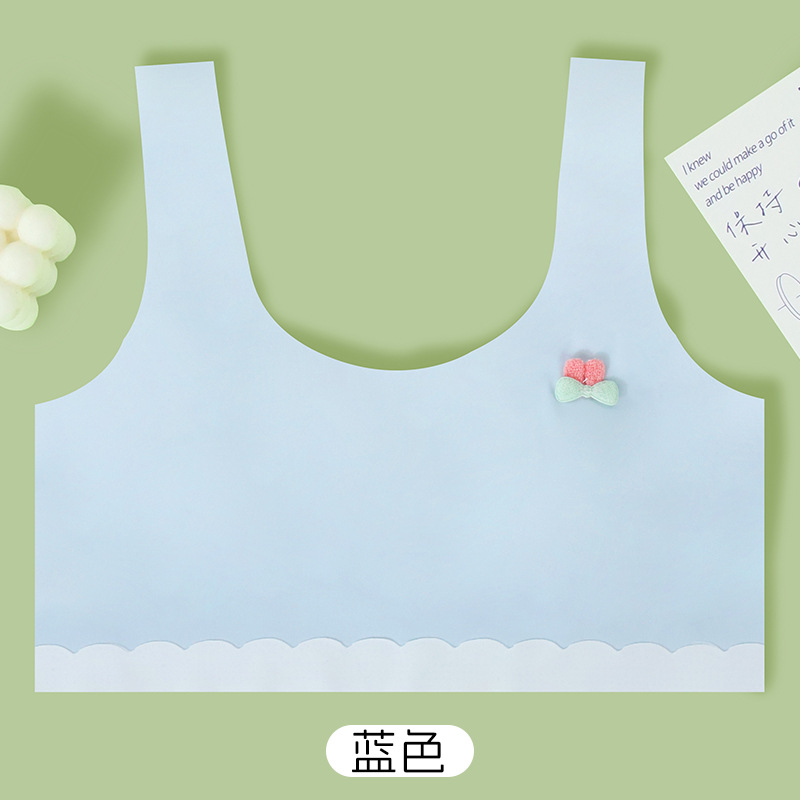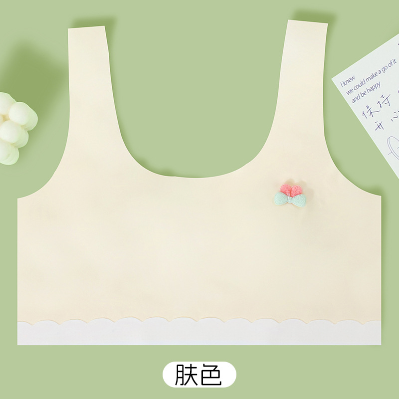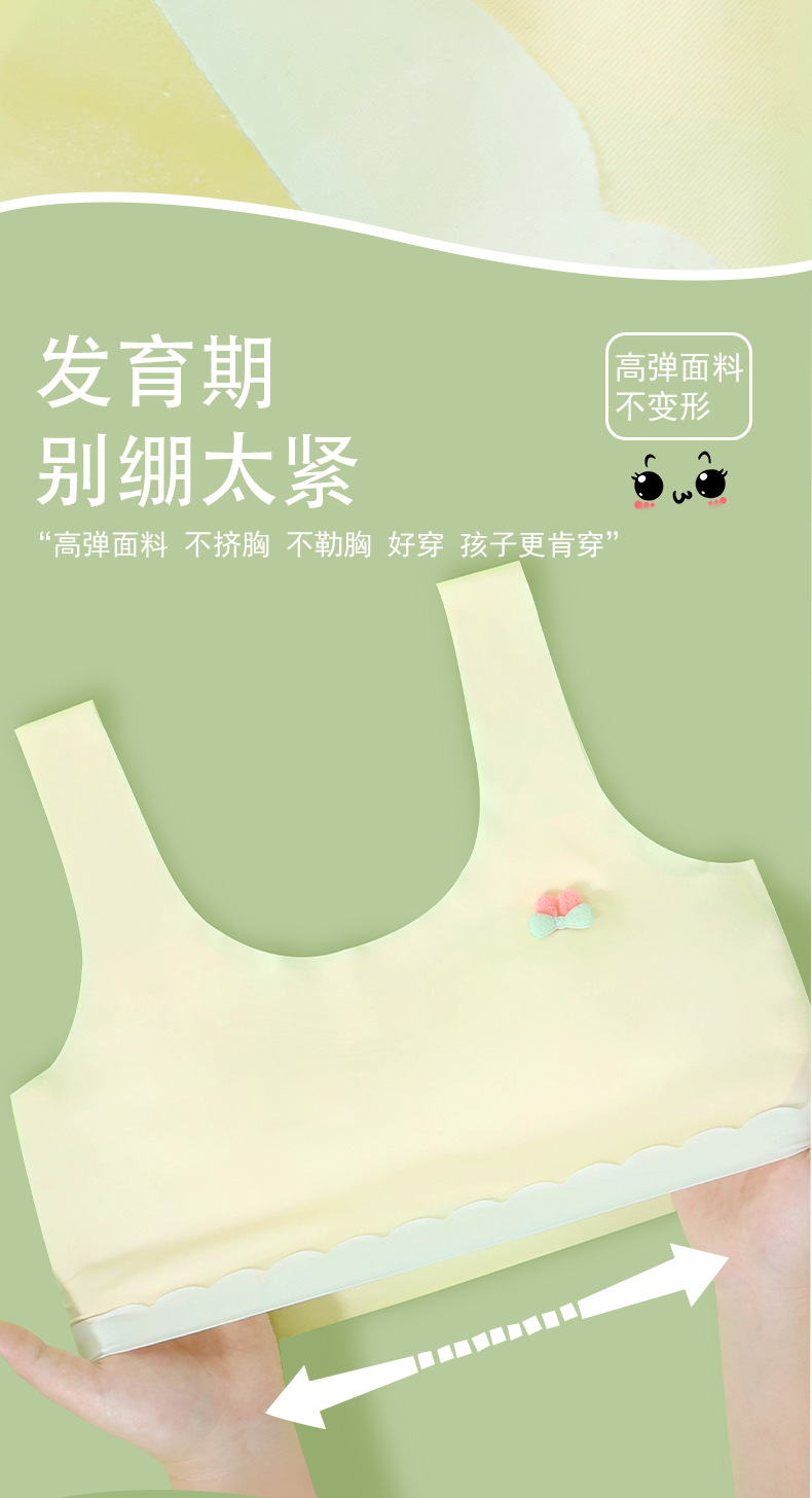 발달기 아이들을 위한 얇고 새로운 심리스 소녀 튜브탑, 여름에 작은 가슴을 보여주는 학생 소녀들을 위한 얼음 실크 속옷, 돌출 방지스토어 가기