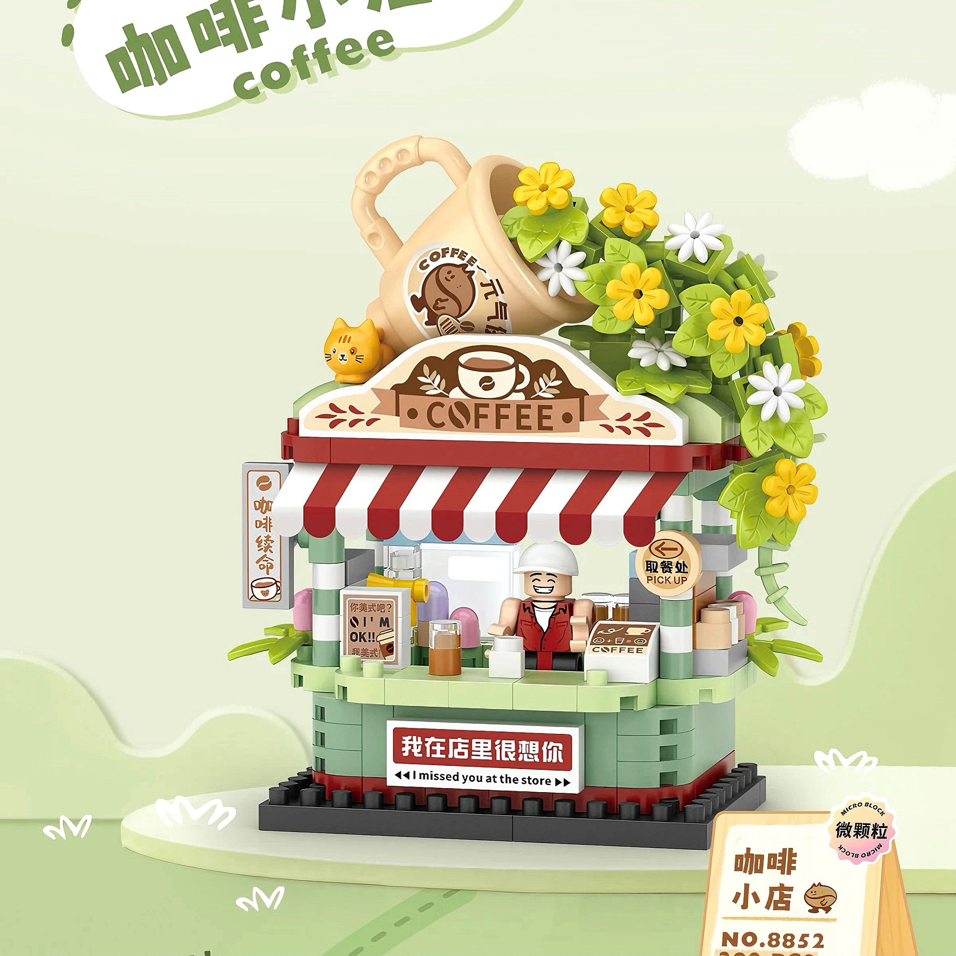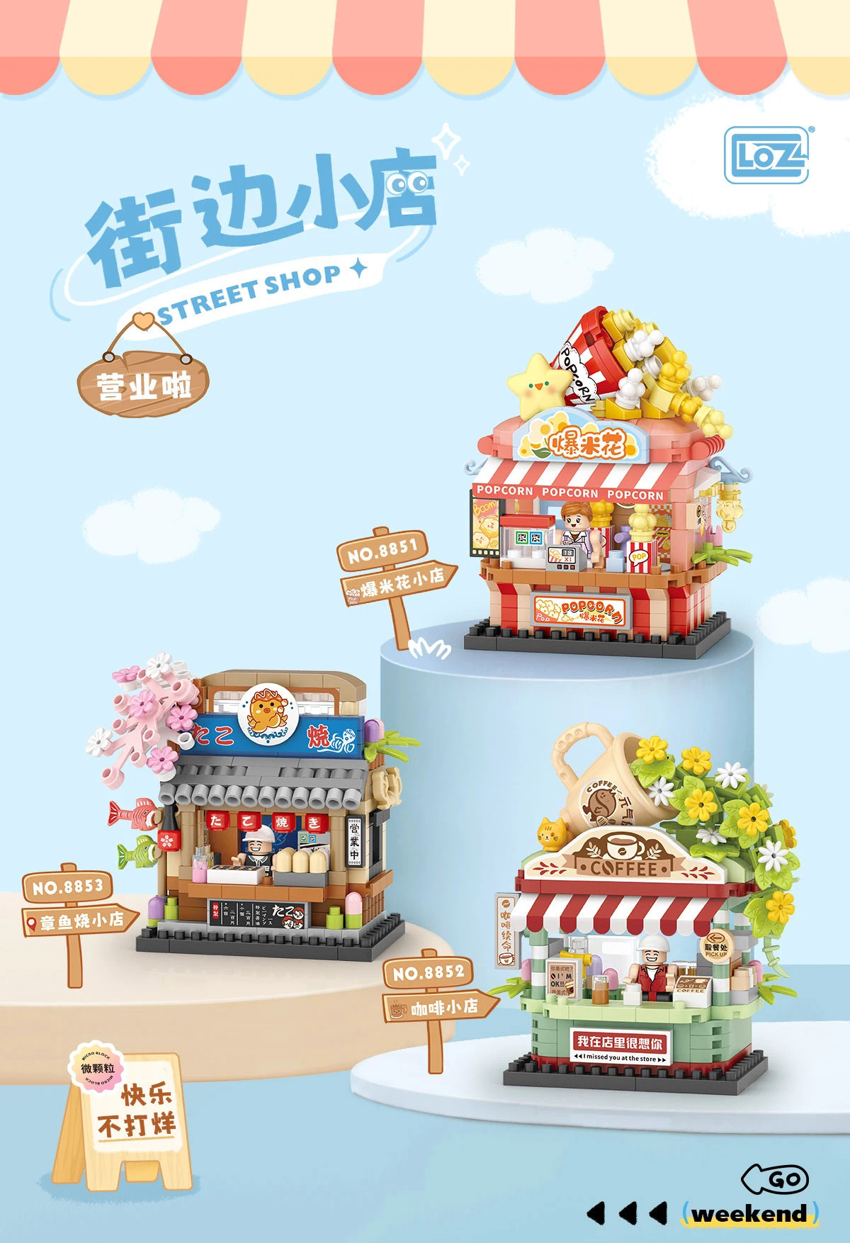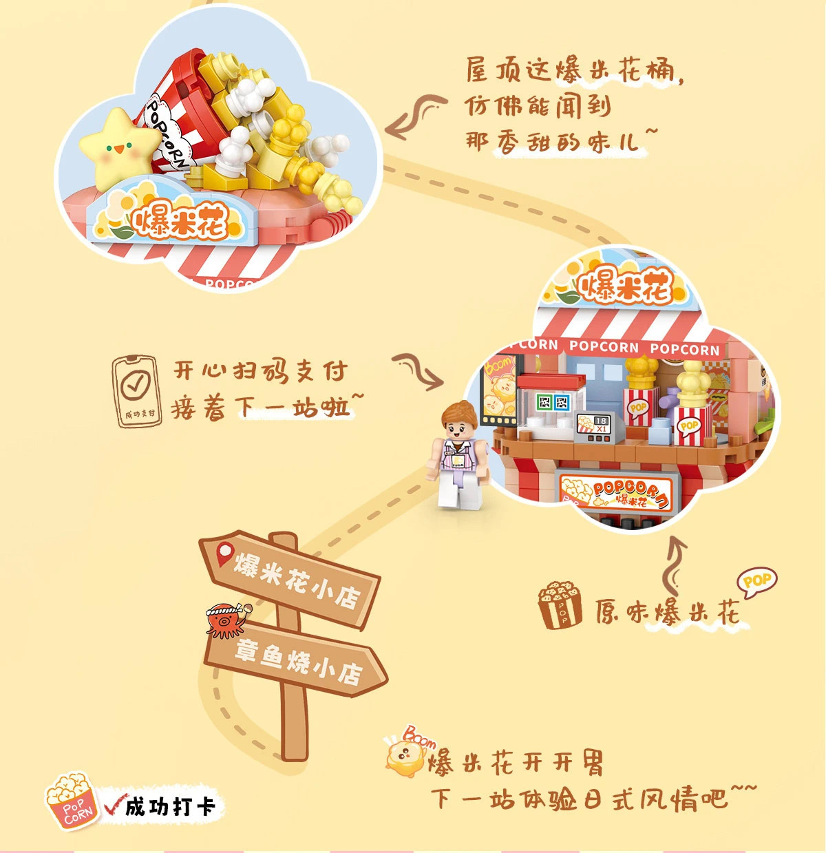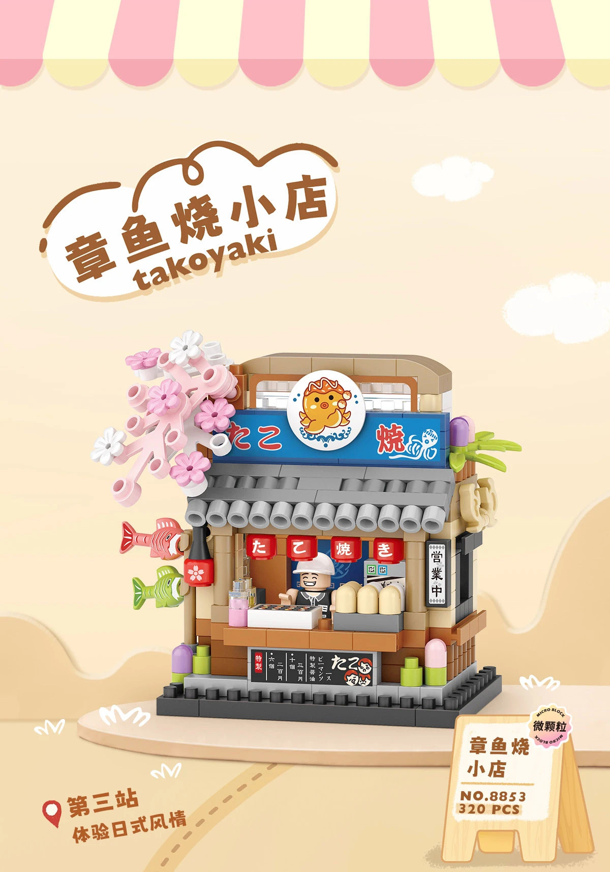 레고 벽돌 스트리트 뷰 시리즈 미식가 거리 문어 굽기 가게 어린이 조립 캐빈 빌딩 모델 도매와 호환