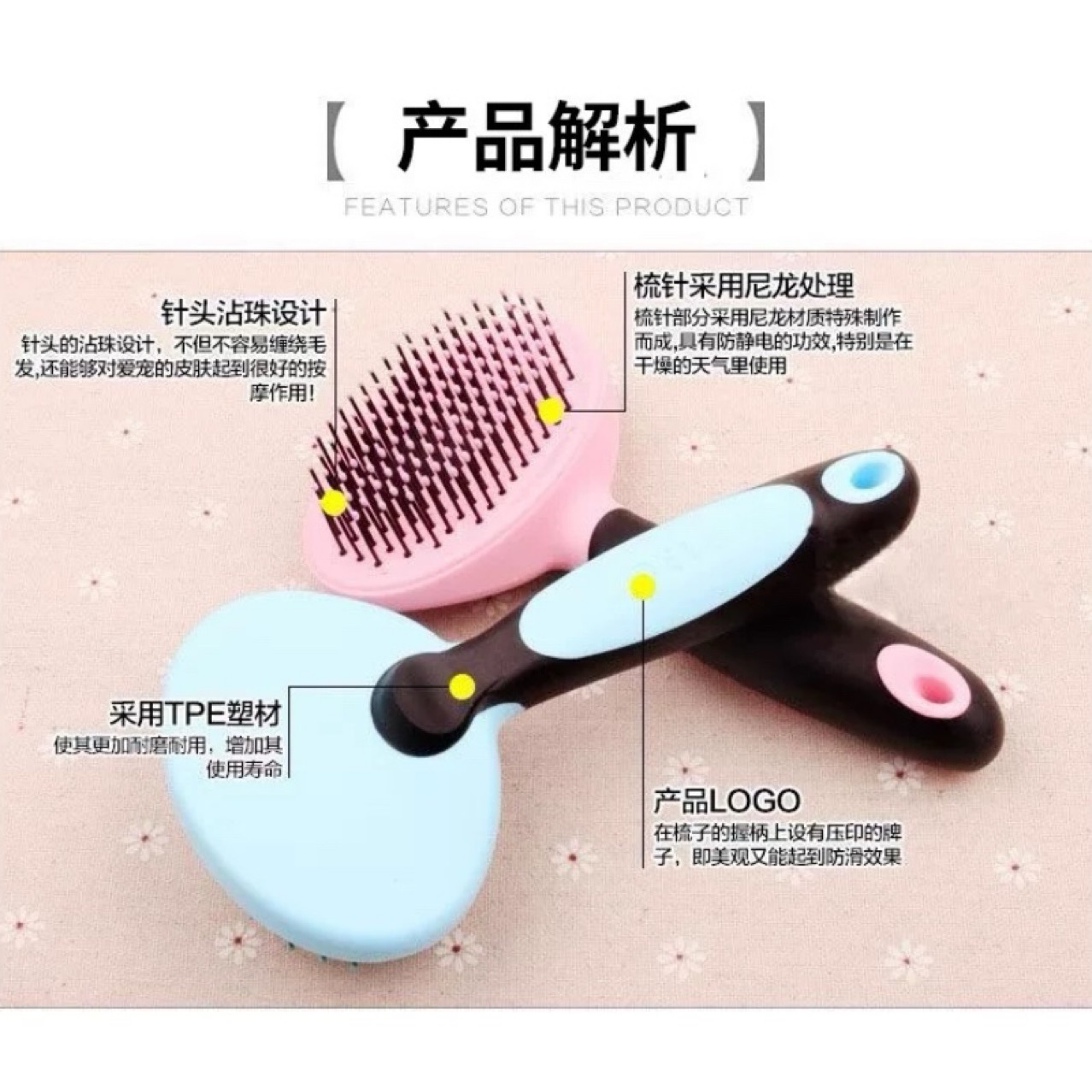 애완 동물 고양이와 개 미용 스타일링 강철 바늘 빗, 편안하고 내구성이 뛰어난 애완 동물 헤어 빗, 마사지 빗스토어 가기