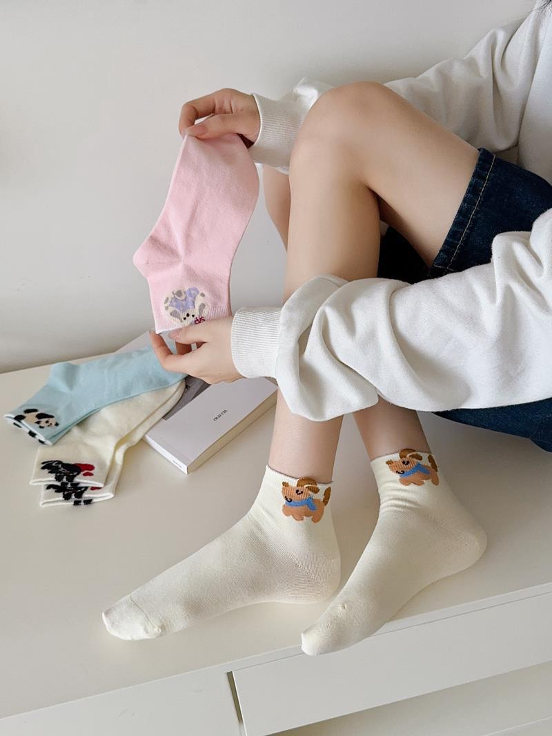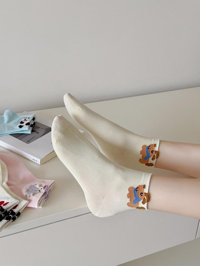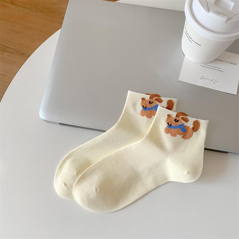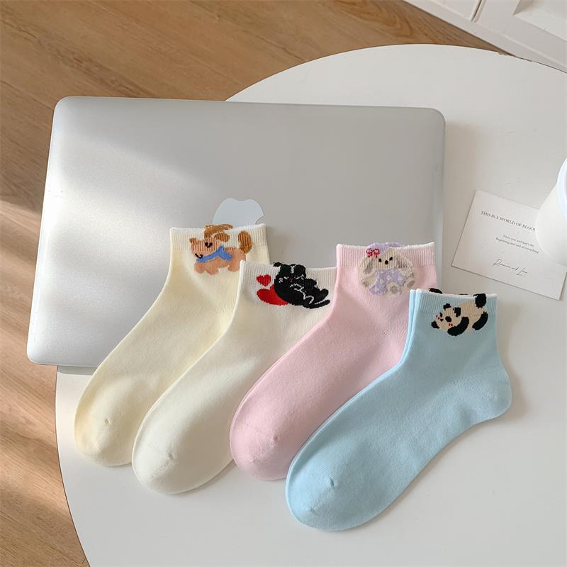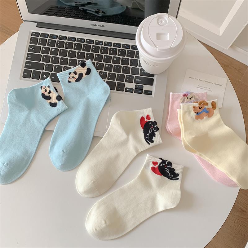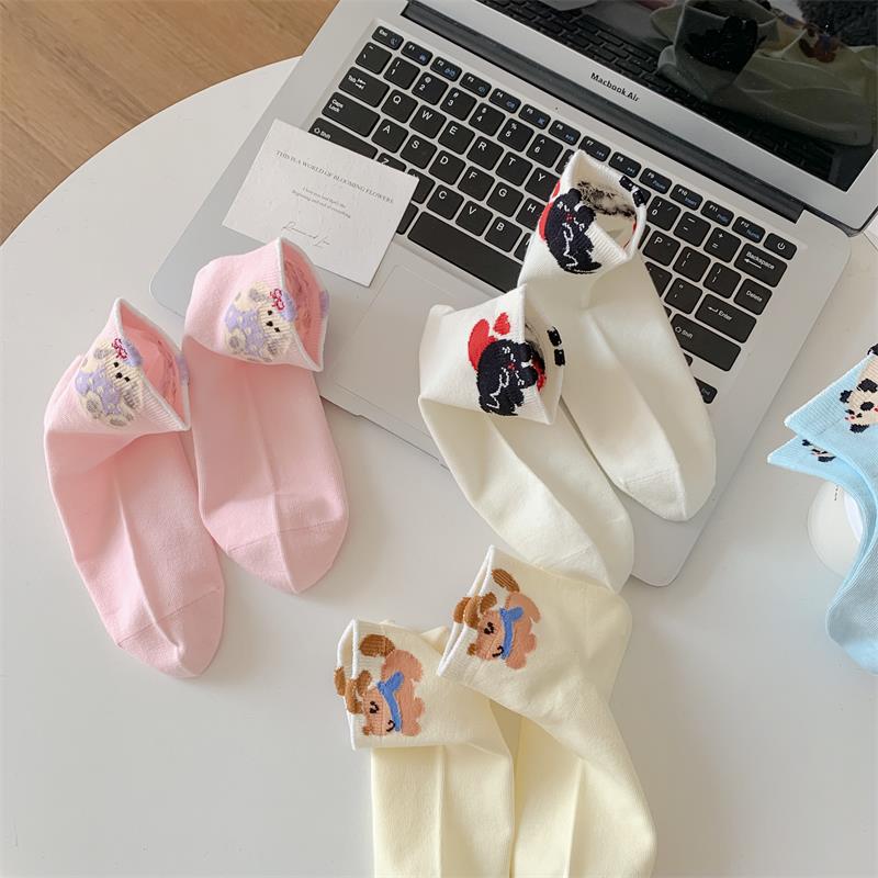 봄과 여름 새로운 양말 일본 만화 강아지 짧은 양말 여성 양말 Baota 대학 스타일 소녀 짧은 통기성스토어 가기