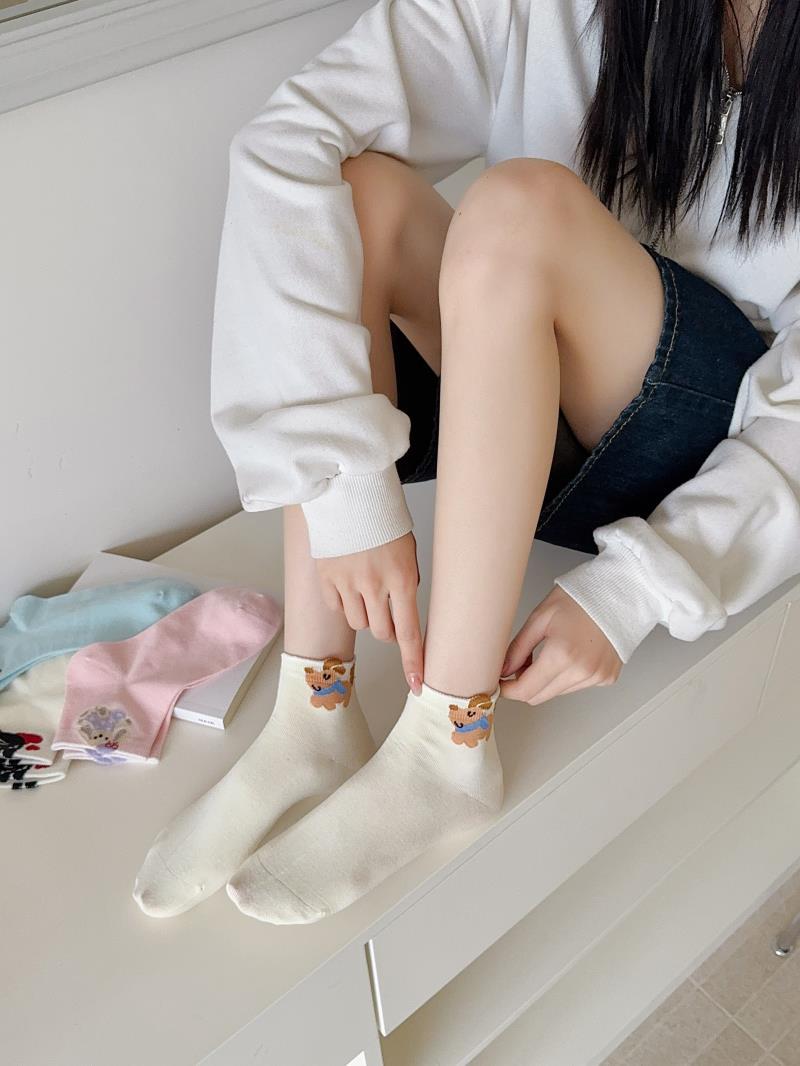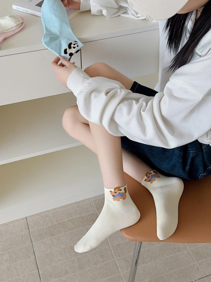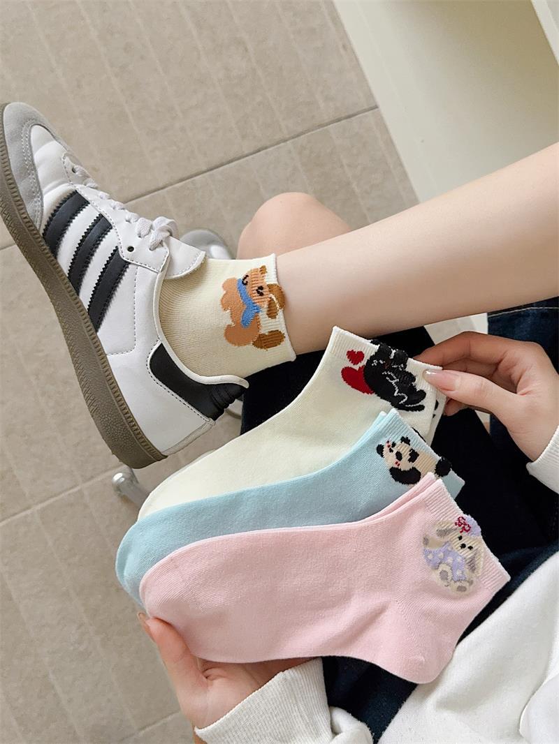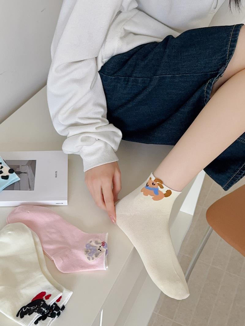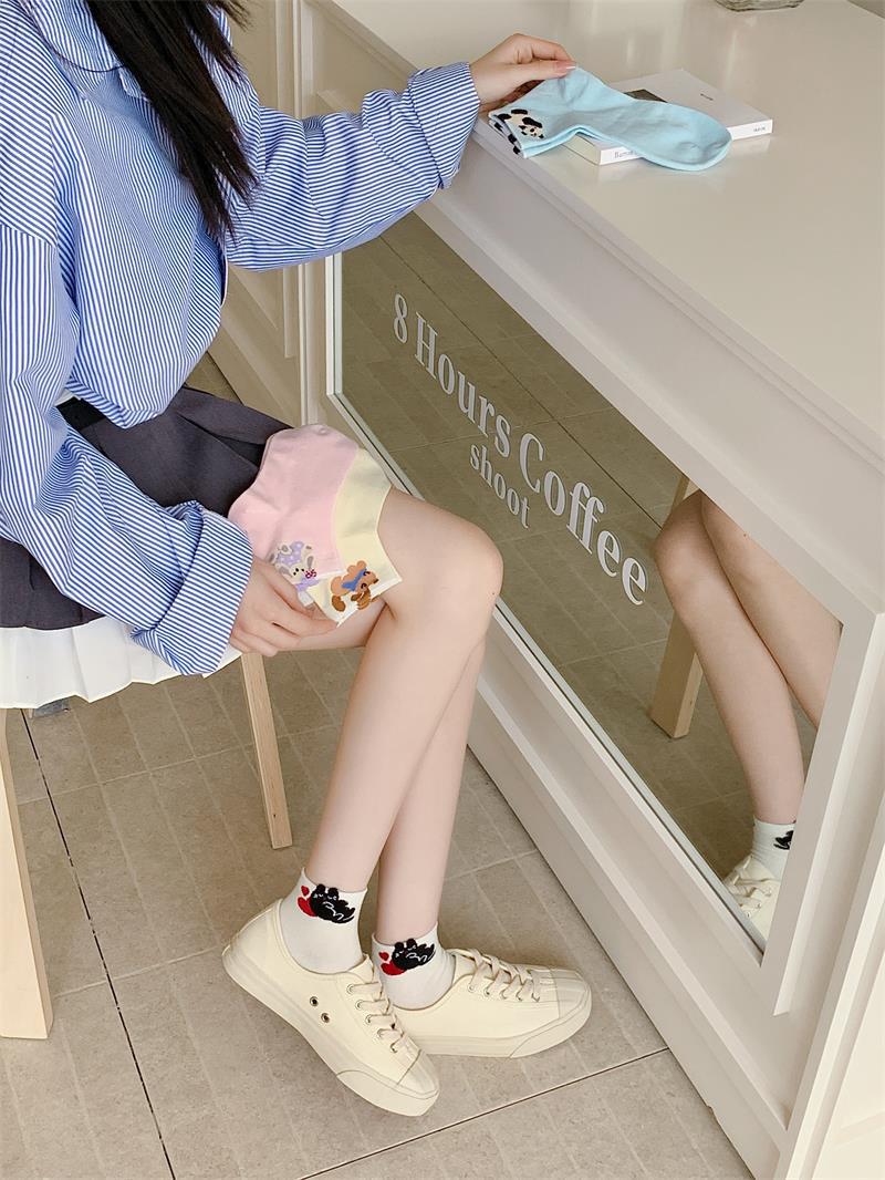 봄과 여름 새로운 양말 일본 만화 강아지 짧은 양말 여성 양말 Baota 대학 스타일 소녀 짧은 통기성스토어 가기