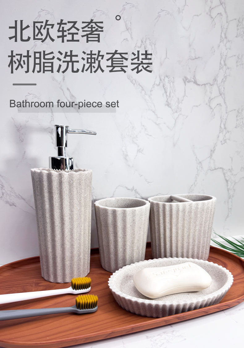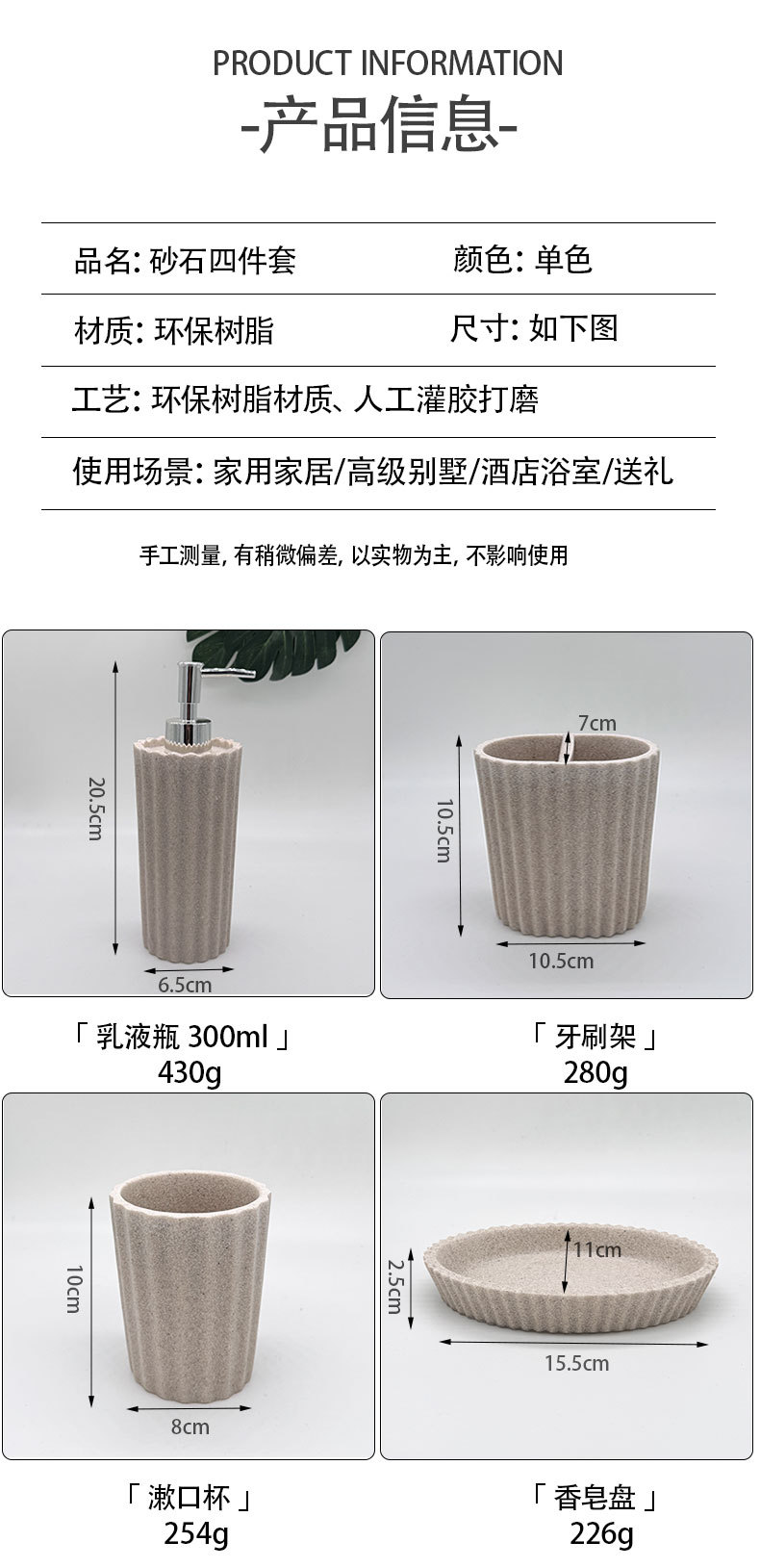 수지 모래와 돌 욕실 세트 유럽 스타일의 간단한 모조 모래와 돌 장식품 욕실 세면 용품 4 피스 욕실 세트