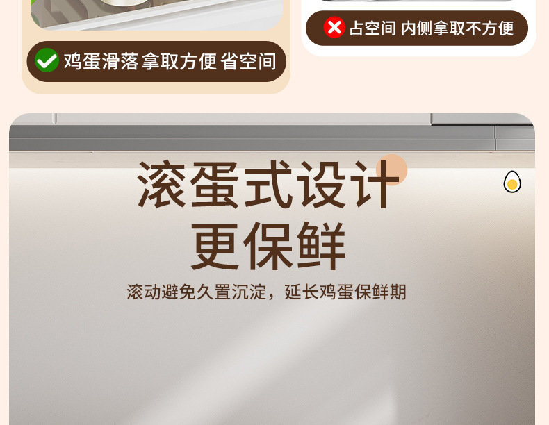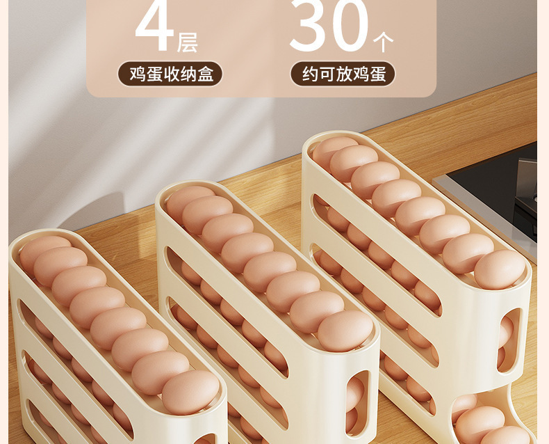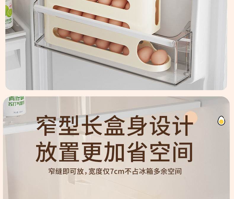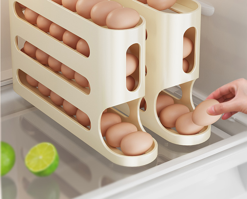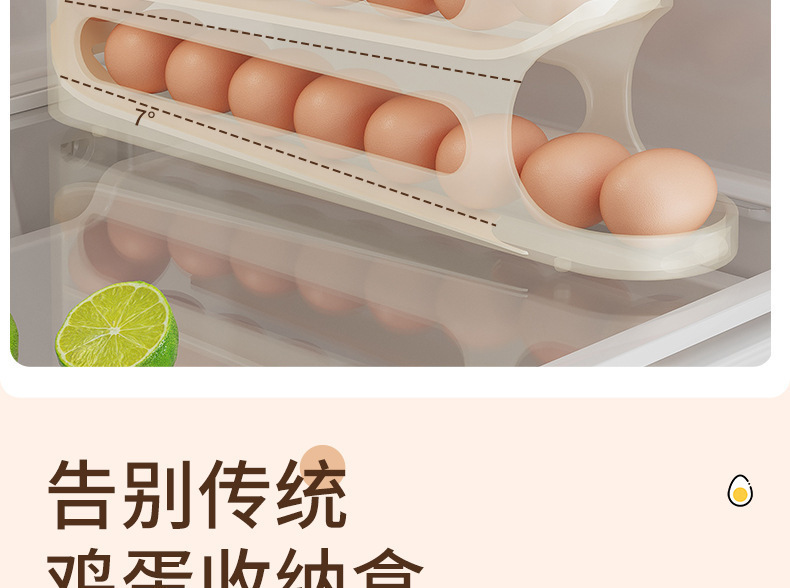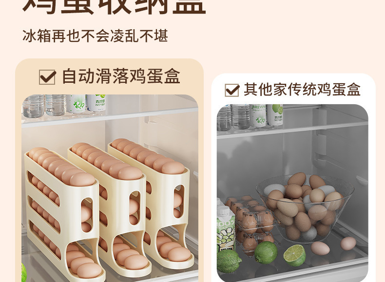 계란 보관 상자 레이어 슬라이드 계단식 계란 상자 보관 냉장고 측면 도어 대용량 자동 계란 롤러