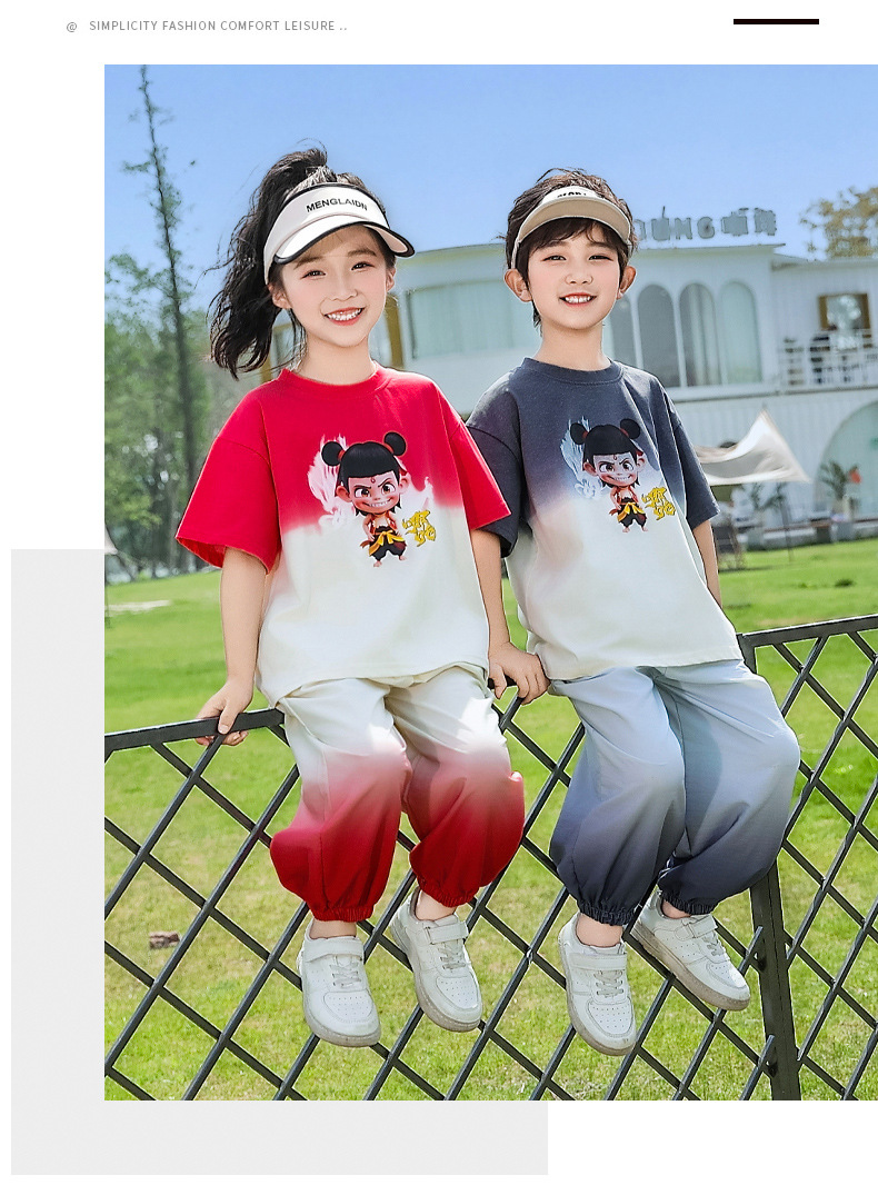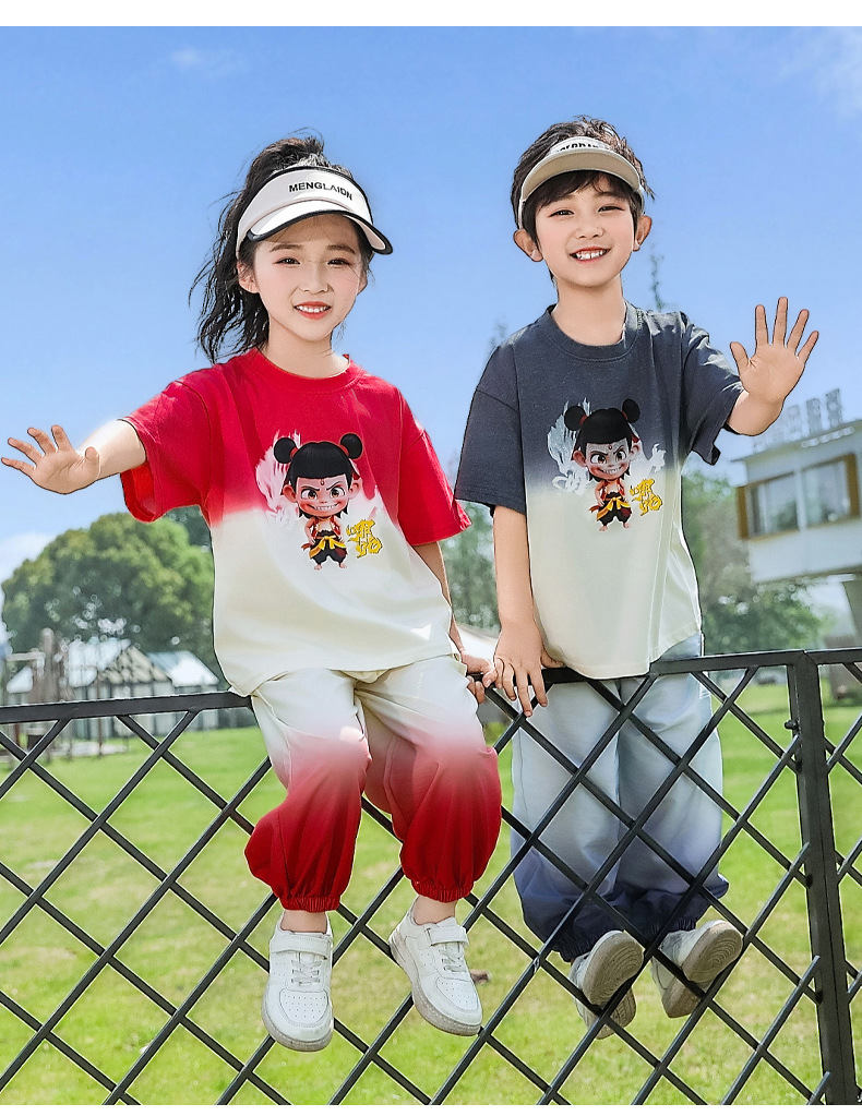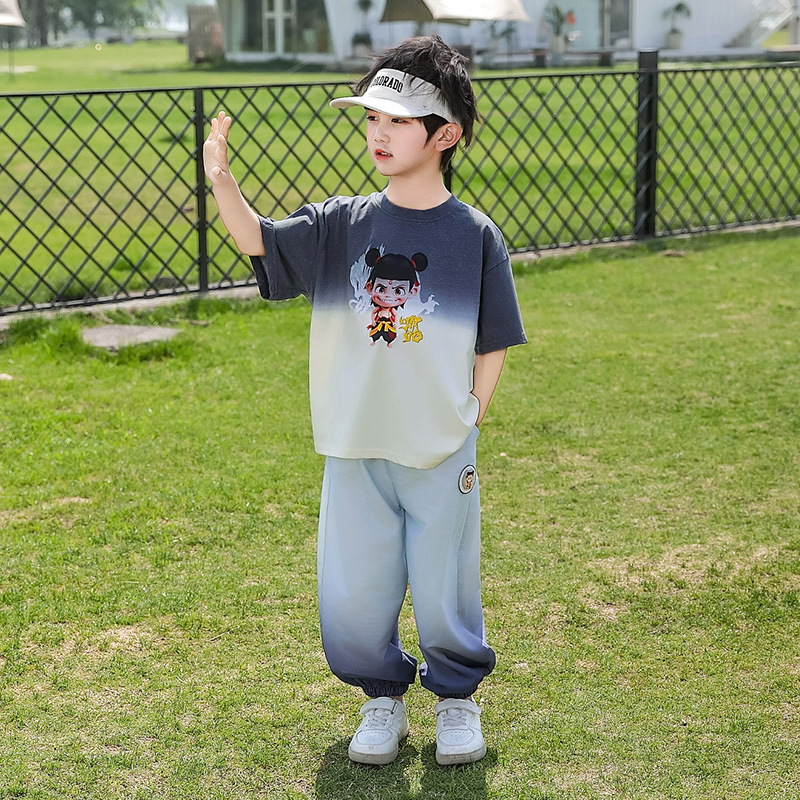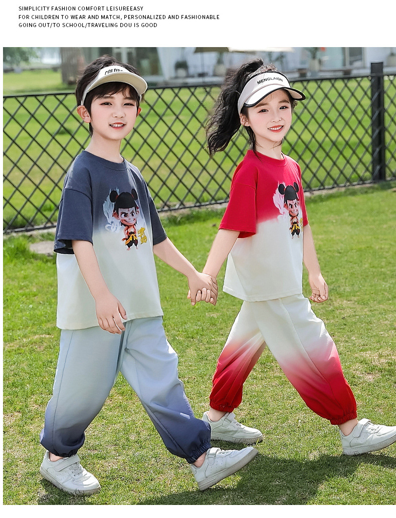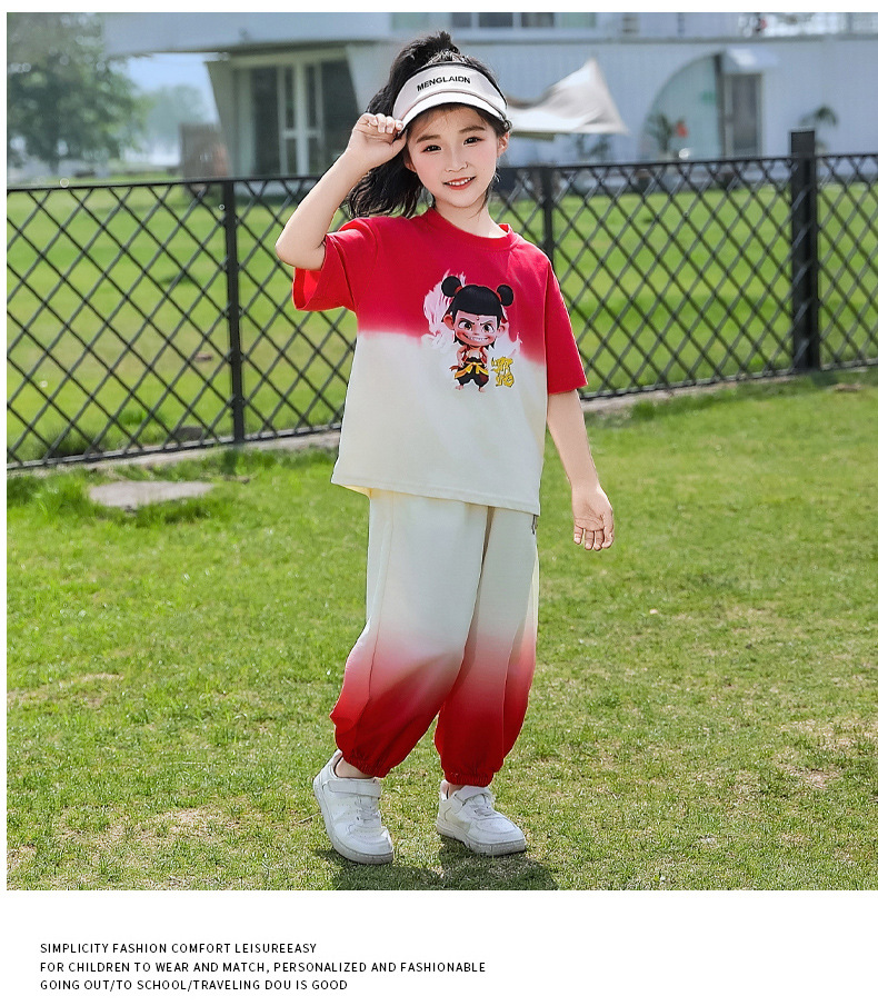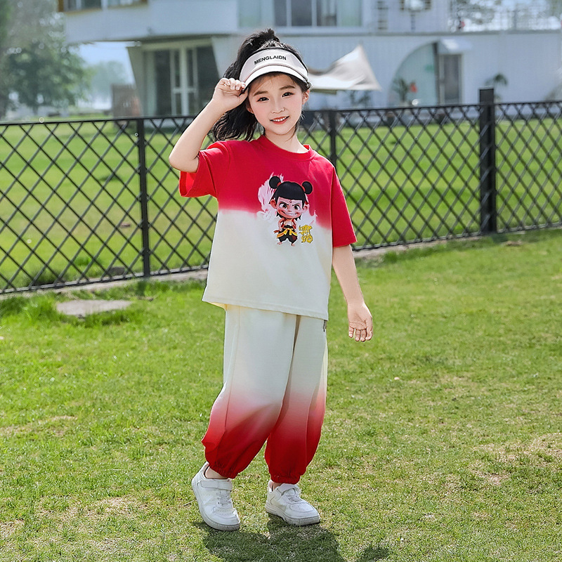 네자 국립 패션 소년 소녀 그라디언트 반팔 세트 어린이 모기 방지 바지 투피스 아기 만화 티셔츠 여름 원피스스토어 가기
