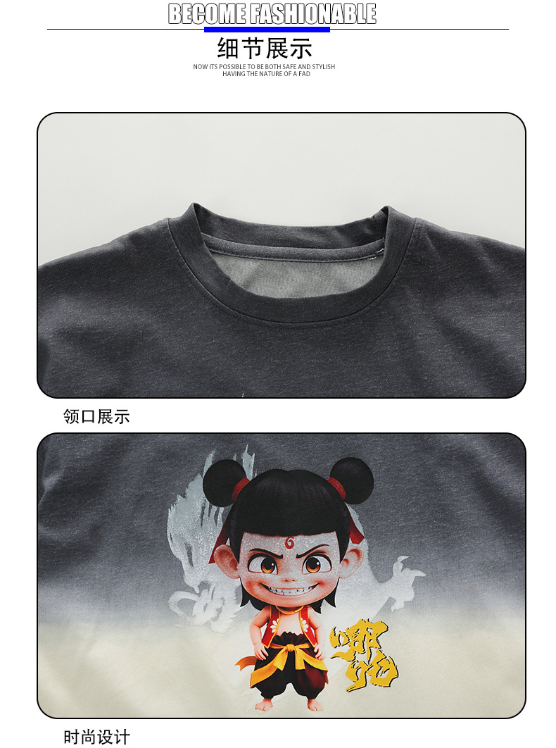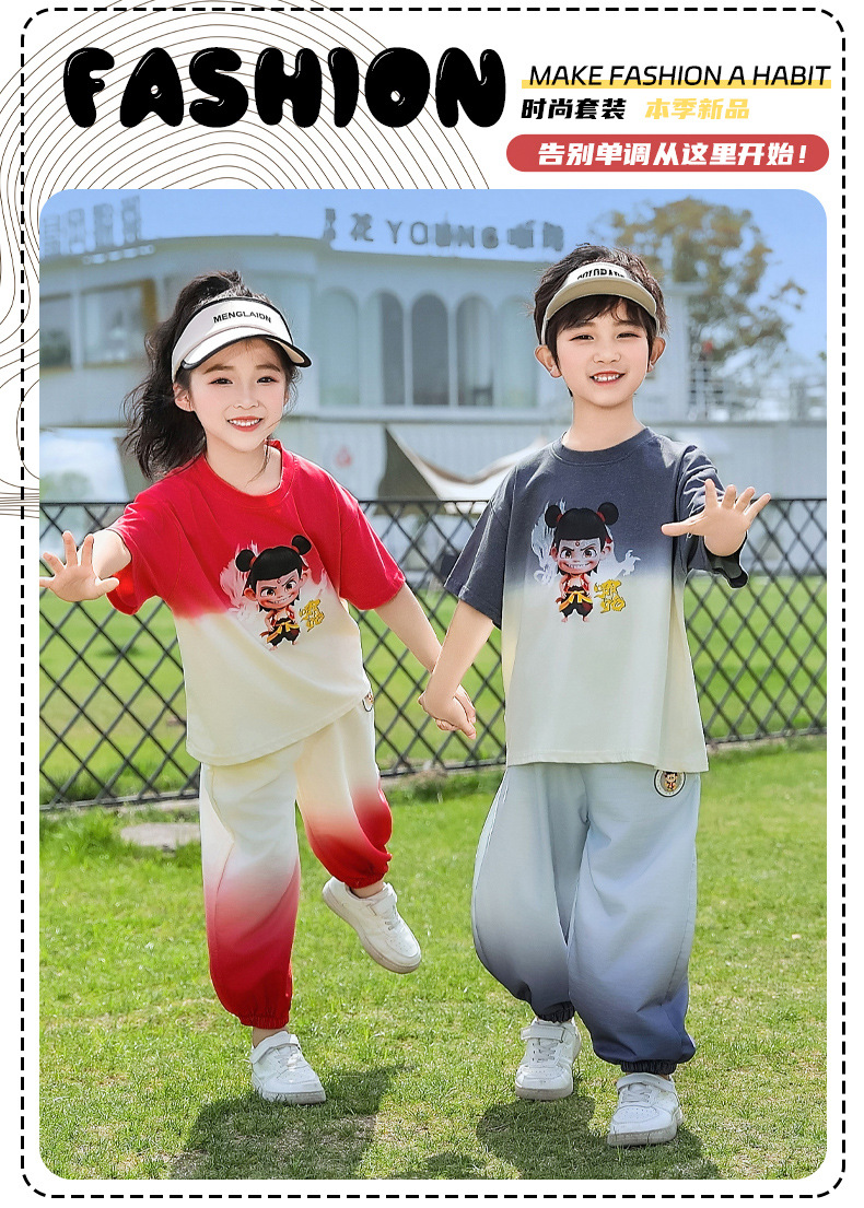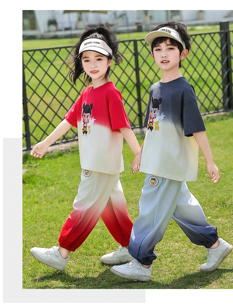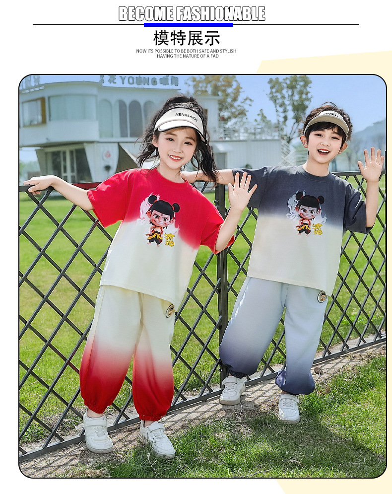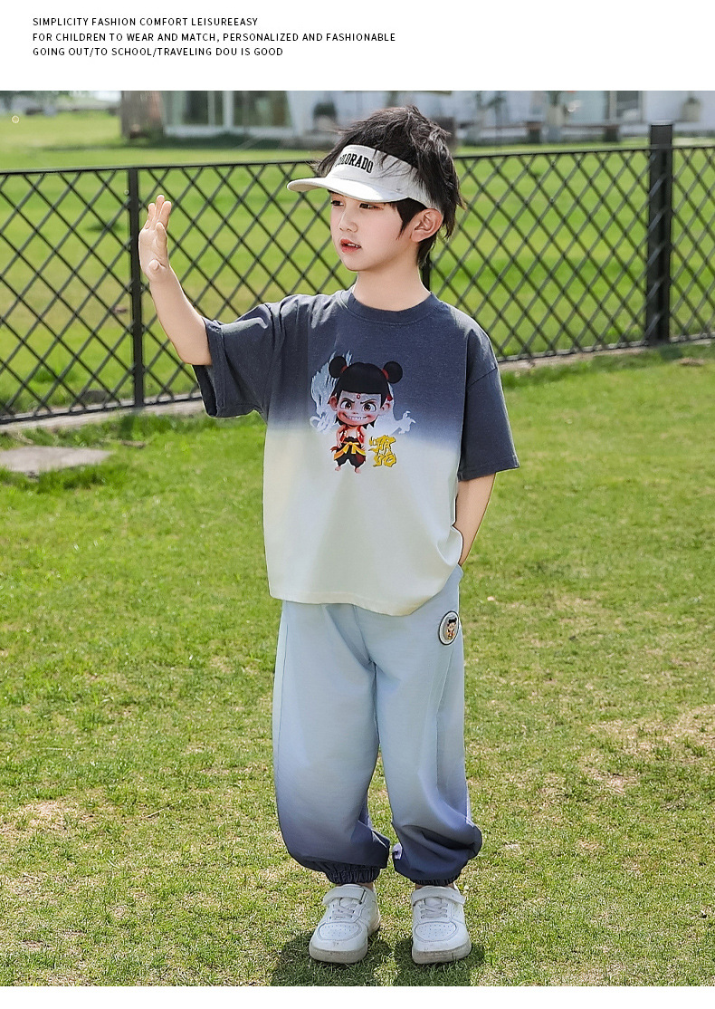 네자 국립 패션 소년 소녀 그라디언트 반팔 세트 어린이 모기 방지 바지 투피스 아기 만화 티셔츠 여름 원피스스토어 가기