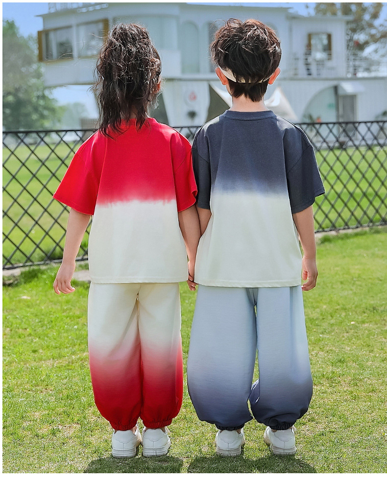 네자 국립 패션 소년 소녀 그라디언트 반팔 세트 어린이 모기 방지 바지 투피스 아기 만화 티셔츠 여름 원피스