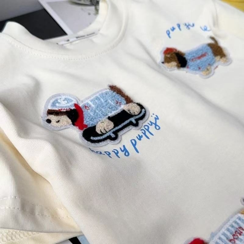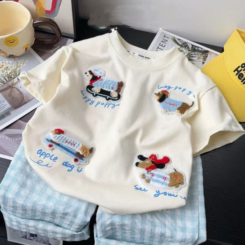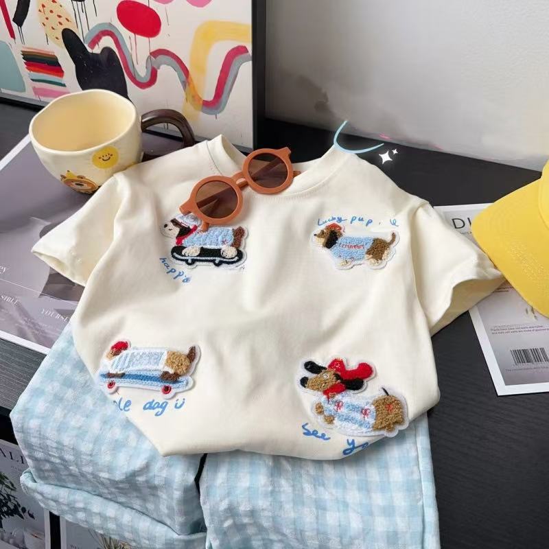 어린이 3 차원 인형 반팔 티셔츠 여름 2025 새로운 느슨한 한국 만화 탑 반팔베이스 셔츠 트렌디스토어 가기