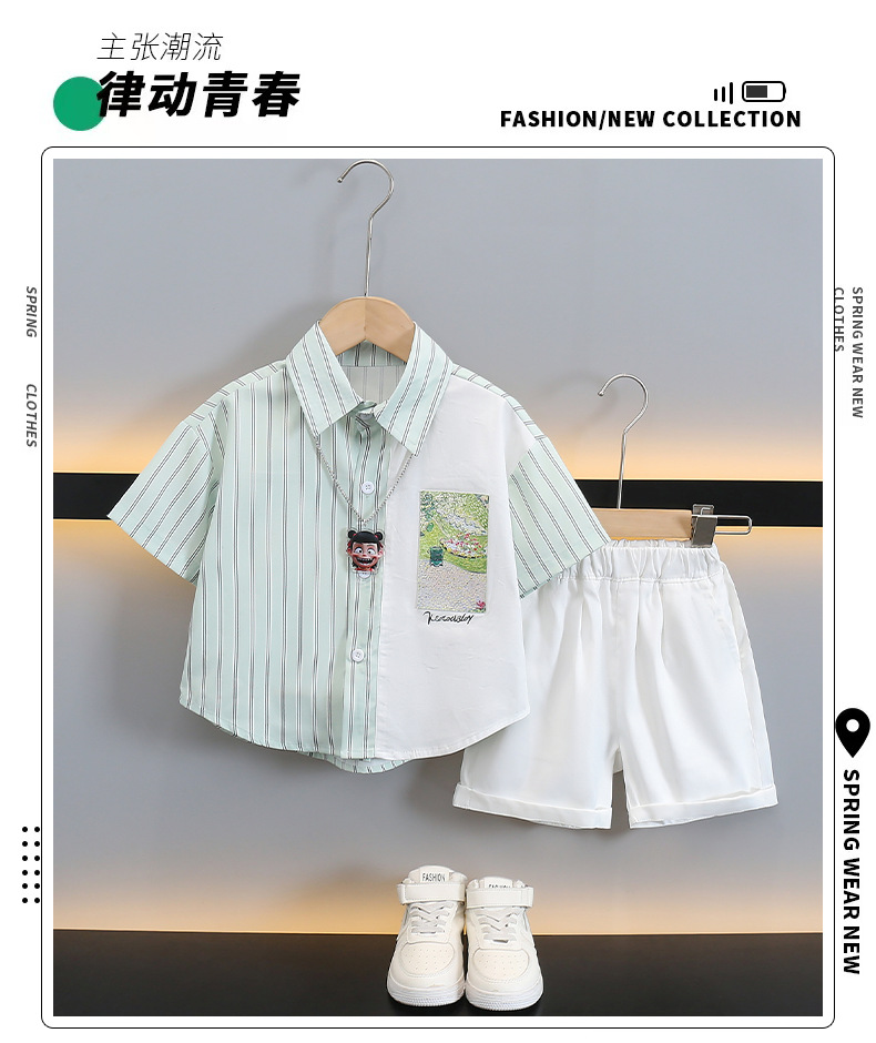 소년 셔츠 여름 옷 세트 2025 새로운 어린이 옷 소년 아기 여름 잘 생긴 반팔 셔츠 투피스 세트스토어 가기