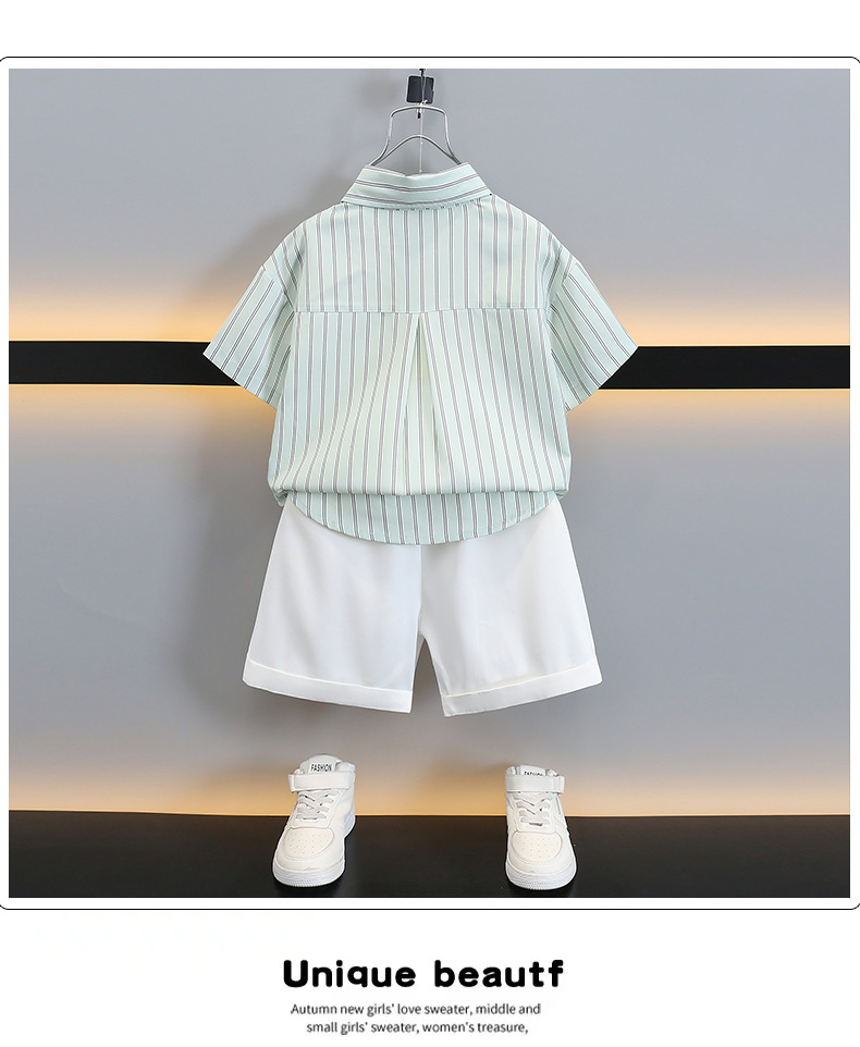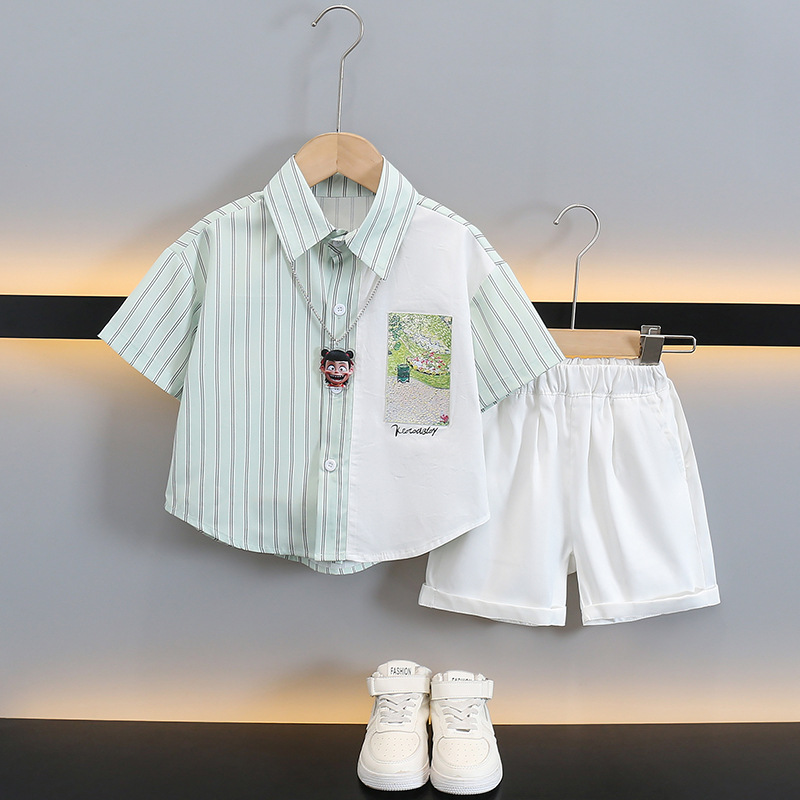 소년 셔츠 여름 옷 세트 2025 새로운 어린이 옷 소년 아기 여름 잘 생긴 반팔 셔츠 투피스 세트