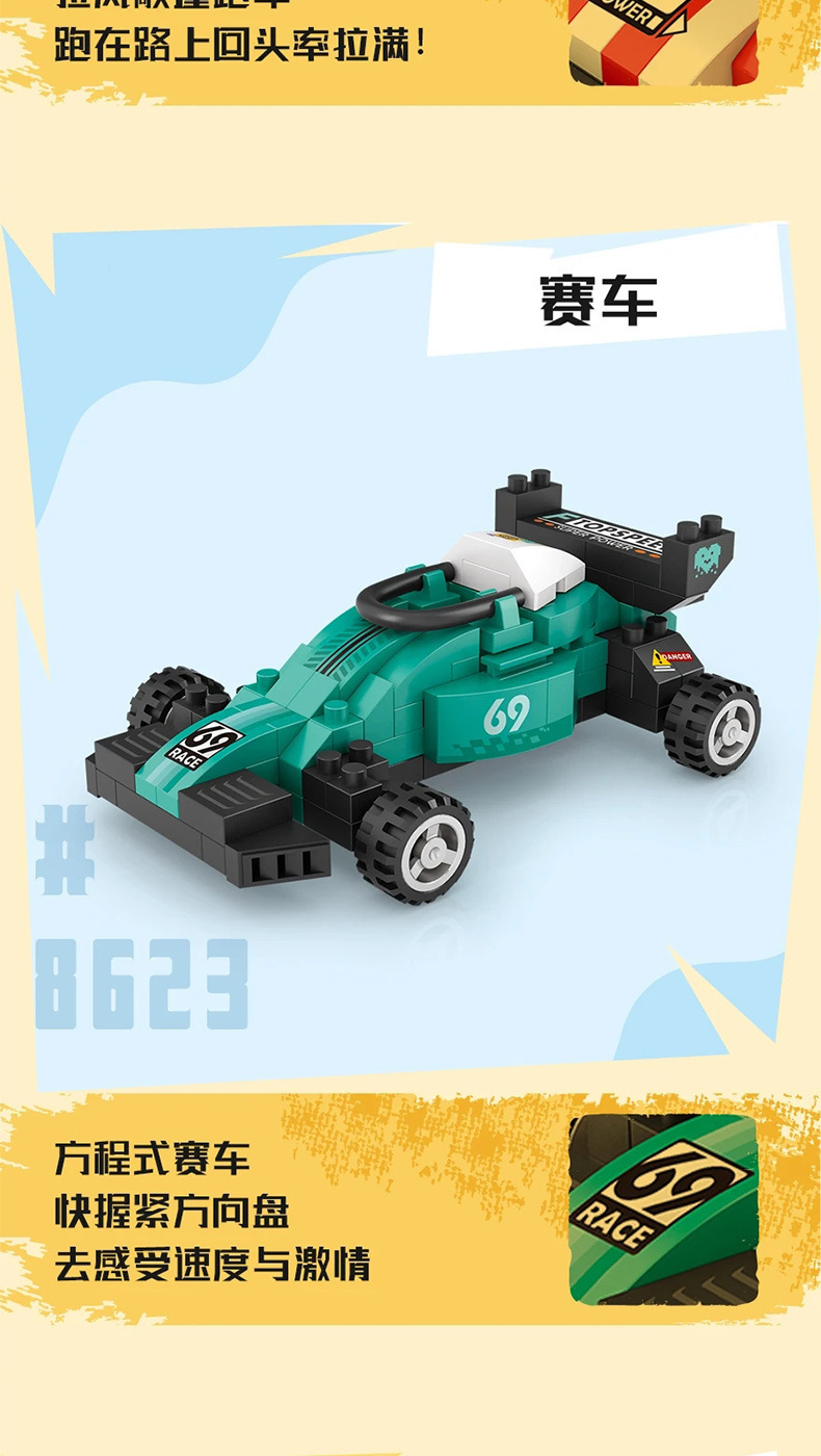 LOZ 미니 자동차 모델 8613 경주 마이크로 입자 빌딩 블록 수송 어린이 장난감 국경 도매스토어 가기
