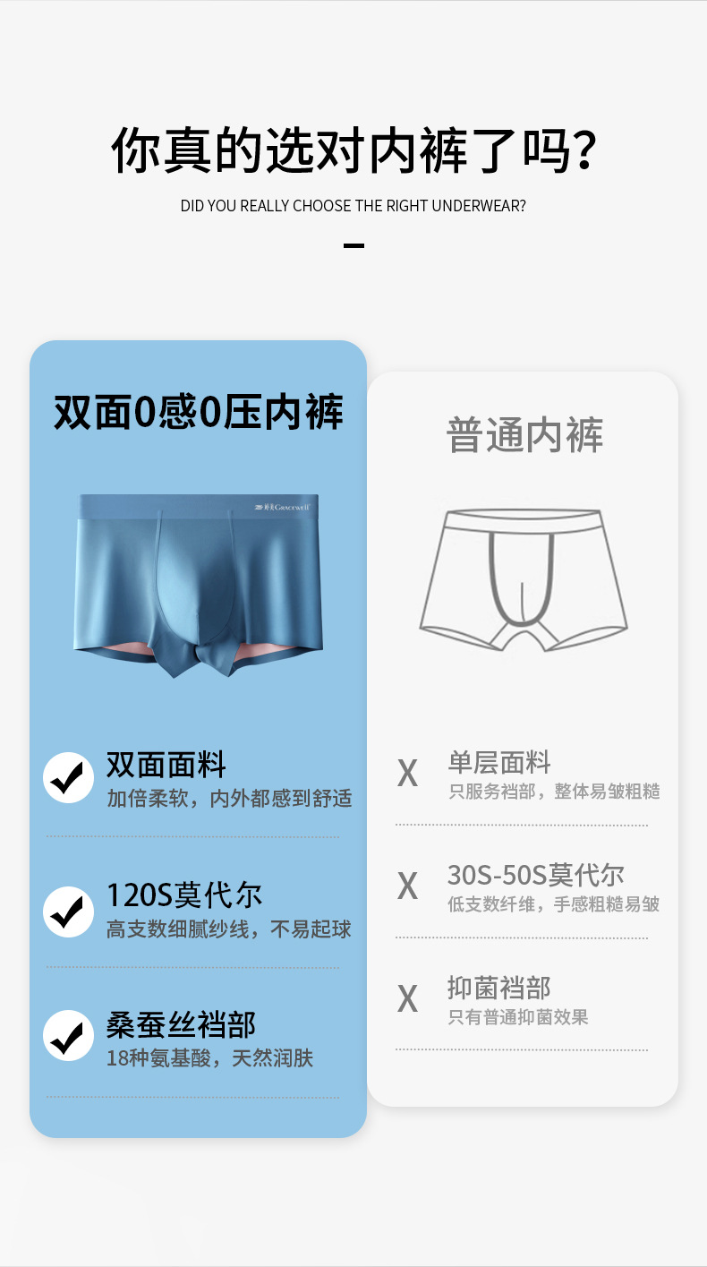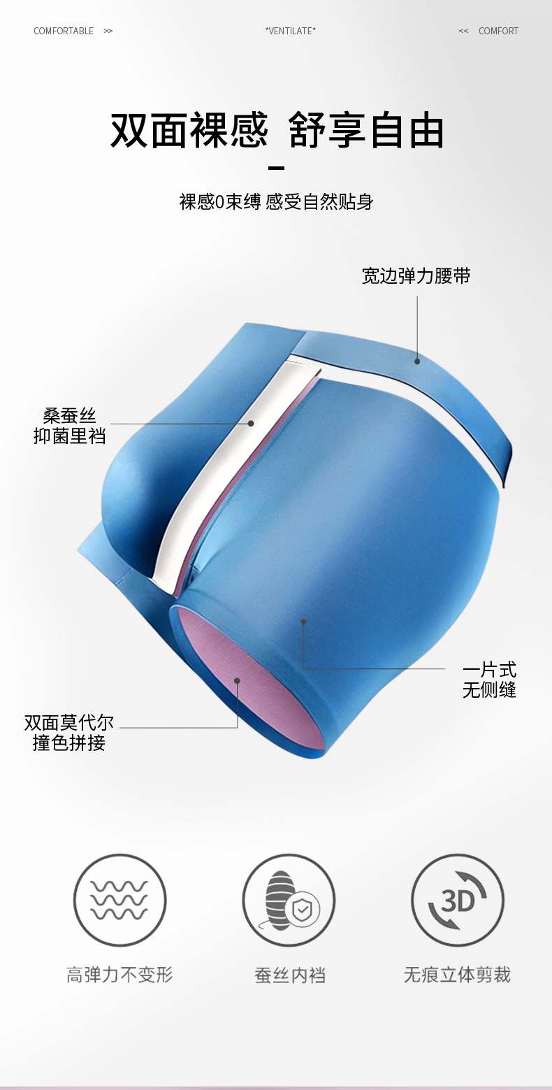 120S 바이 컬러 모달 남성용 속옷 10A 뽕나무 실크 항균 하이 엔드 트레이스 여름 아이스 실크 퀵 건조 반바지스토어 가기