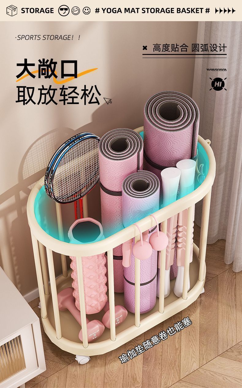 스토리지 프레임 가정용 휠 모바일 요가 피트니스 장비 의류 도구 보관 바구니 아티팩트 주최자 보관 바구니