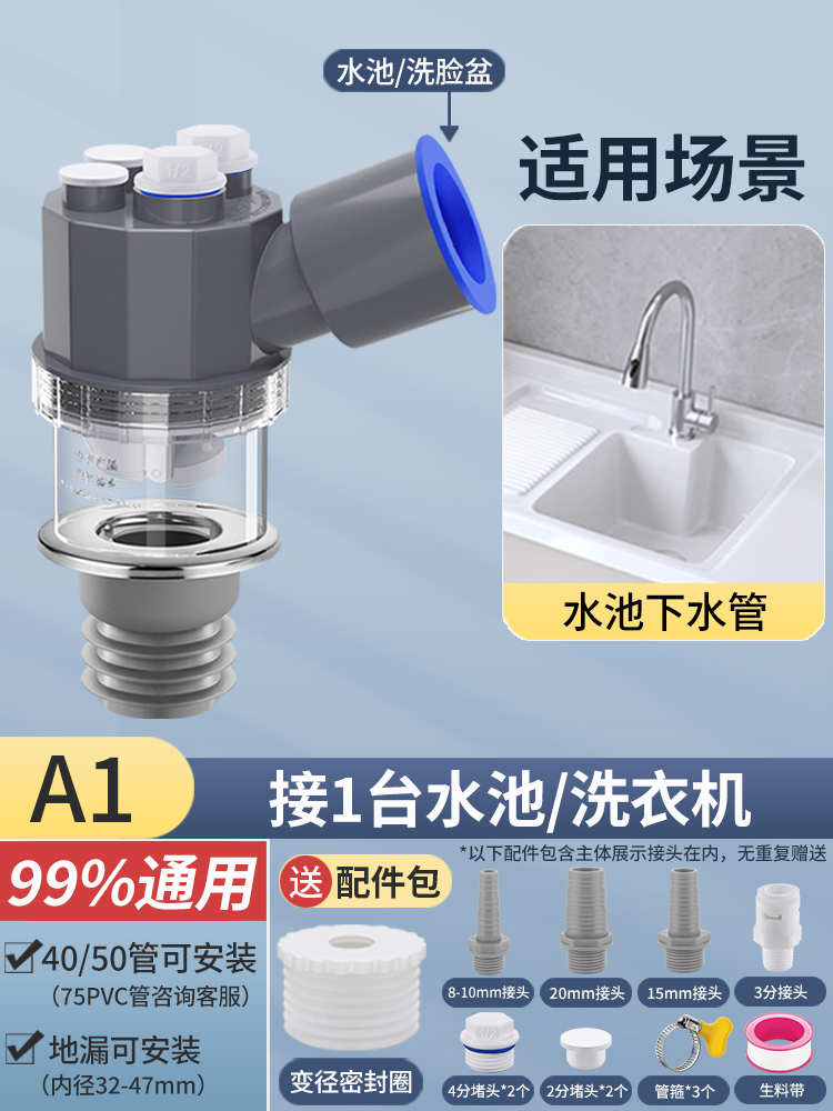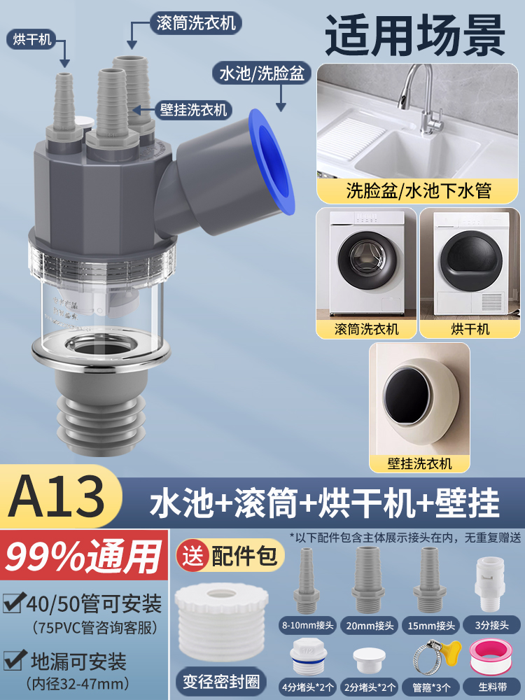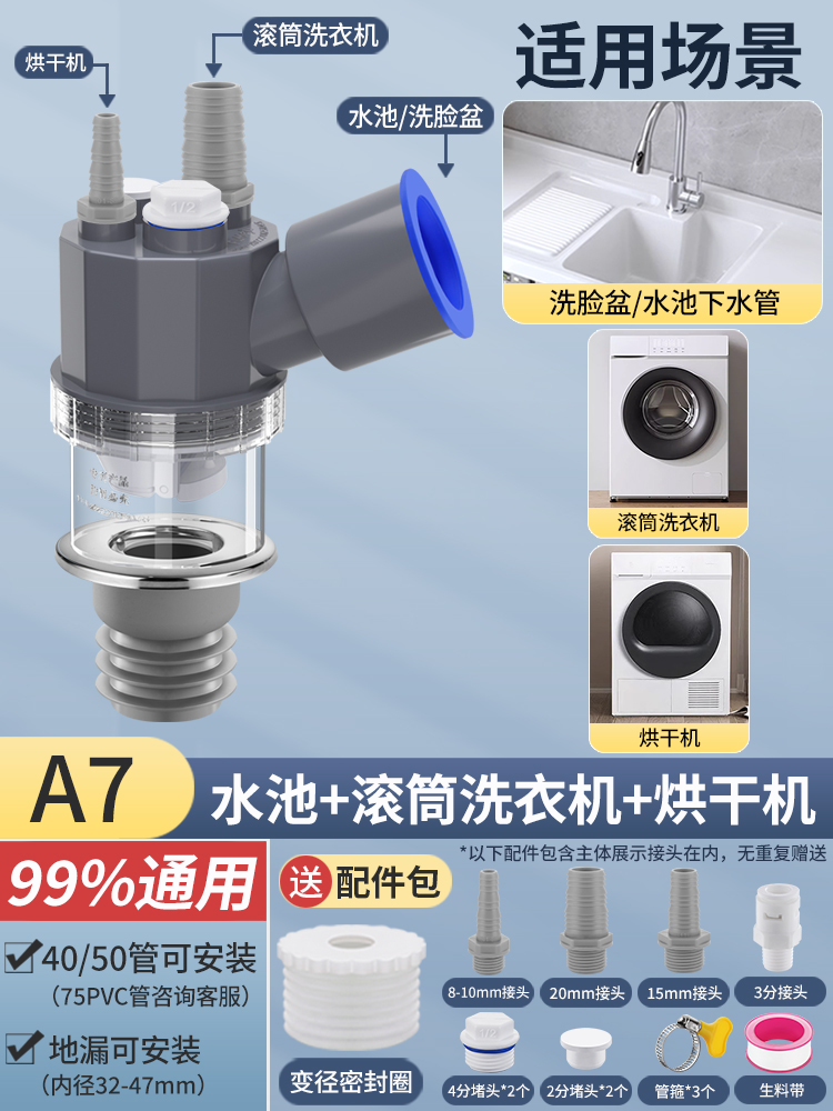 하수관 3방향 세탁기 바닥 배수구 커넥터 건조기 에어컨 배수관 3방향 2-in-1 분배기스토어 가기