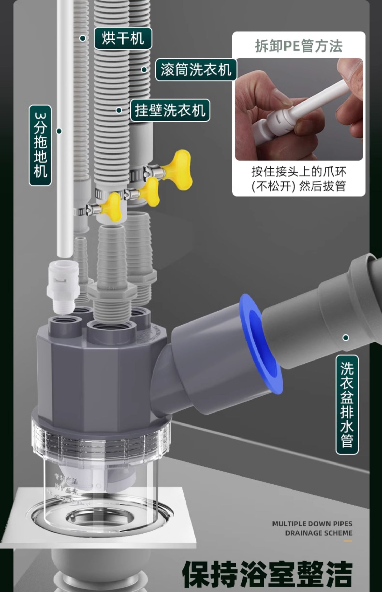 하수관 3방향 세탁기 바닥 배수구 커넥터 건조기 에어컨 배수관 3방향 2-in-1 분배기
