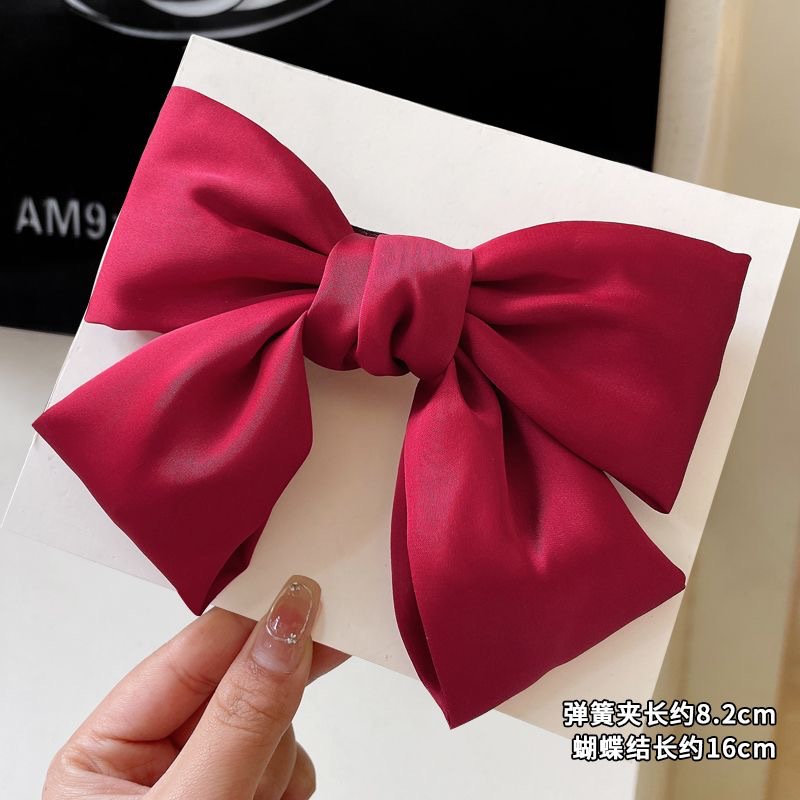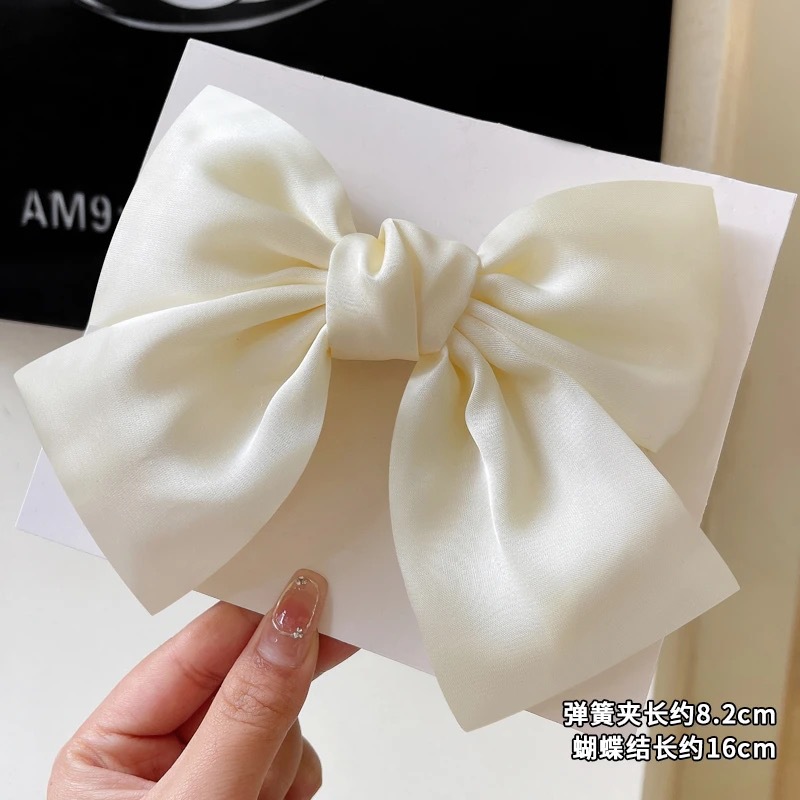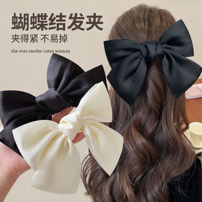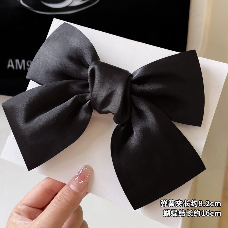 블랙 새틴 빅 보우 헤드웨어 여성용 2024 새로운 백 헤드 클립 헤어 액세서리 가을 및 겨울 사이버 연예인 헤어 카드