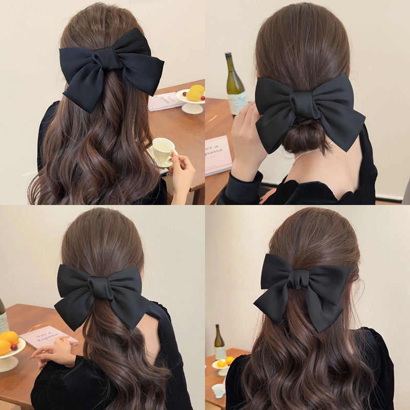 블랙 새틴 빅 보우 헤드웨어 여성용 2024 새로운 백 헤드 클립 헤어 액세서리 가을 및 겨울 사이버 연예인 헤어 카드스토어 가기