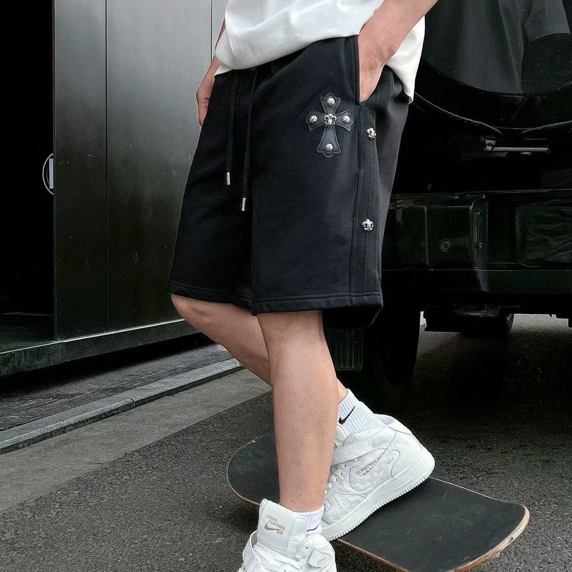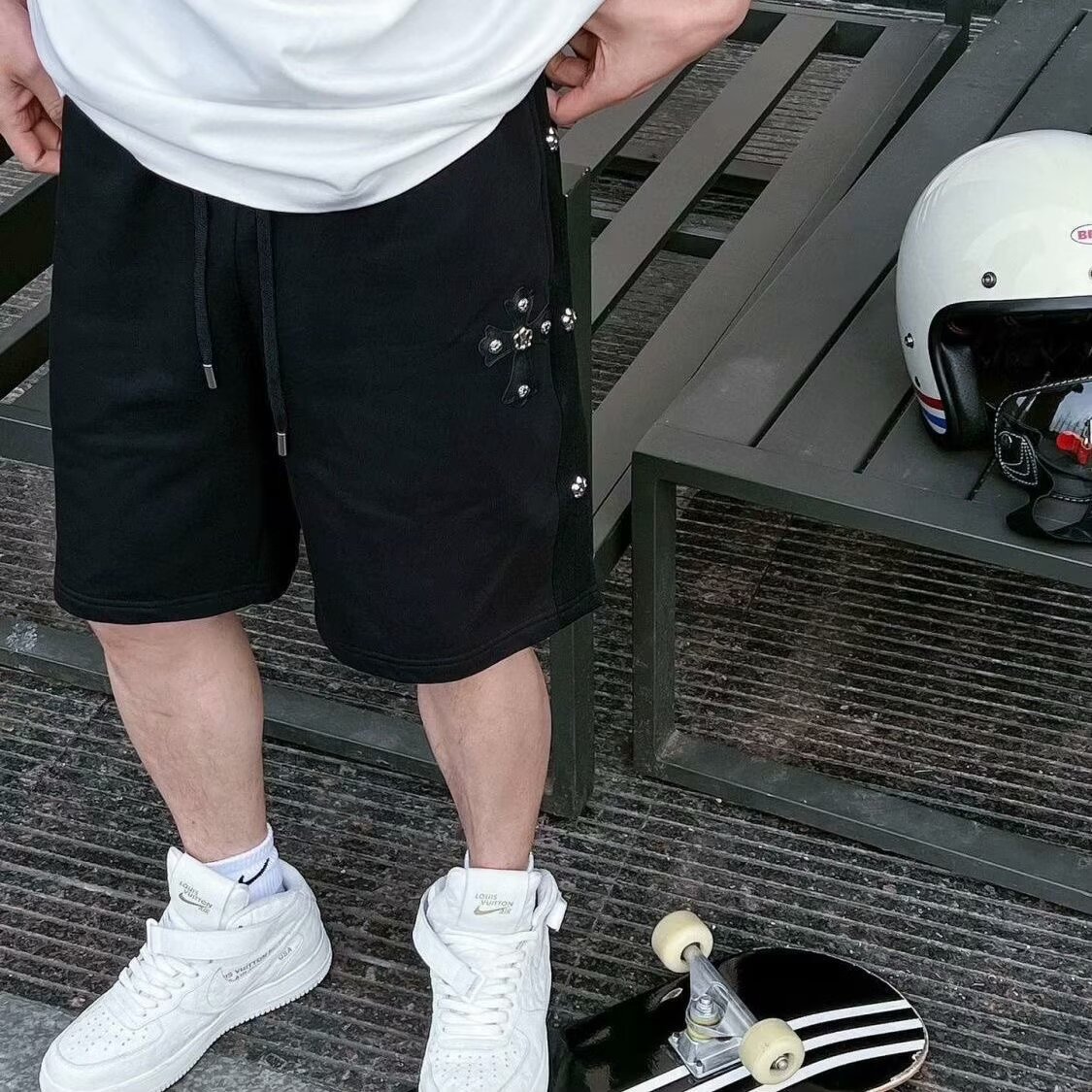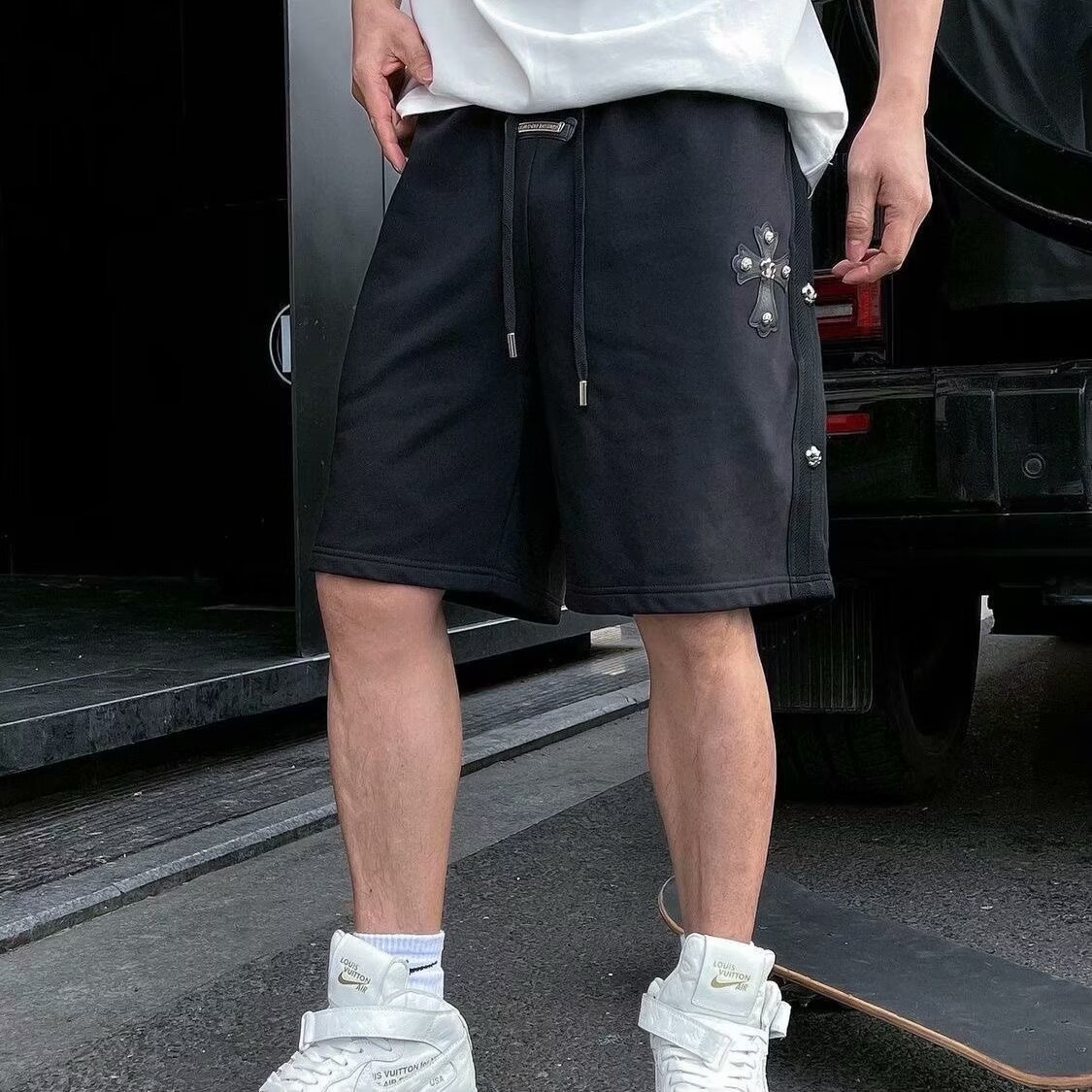 [여름 핫 스타일] 크로스 스플라이스 비치 팬츠 남성 루즈 5부 팬츠 내셔널 패션 스포츠 캐주얼 반바지