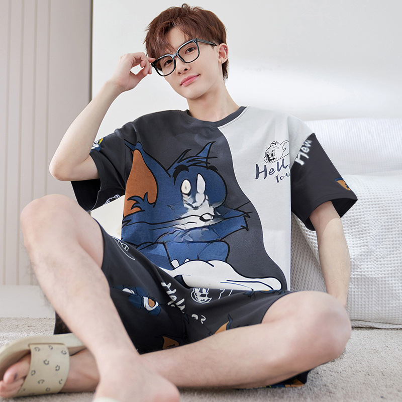 잠옷 반팔 여름 10 대 남자 얇은 중학생 홈 의류 겉옷 반바지 플러스 사이즈 풀오버스토어 가기