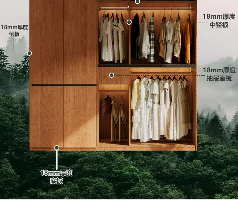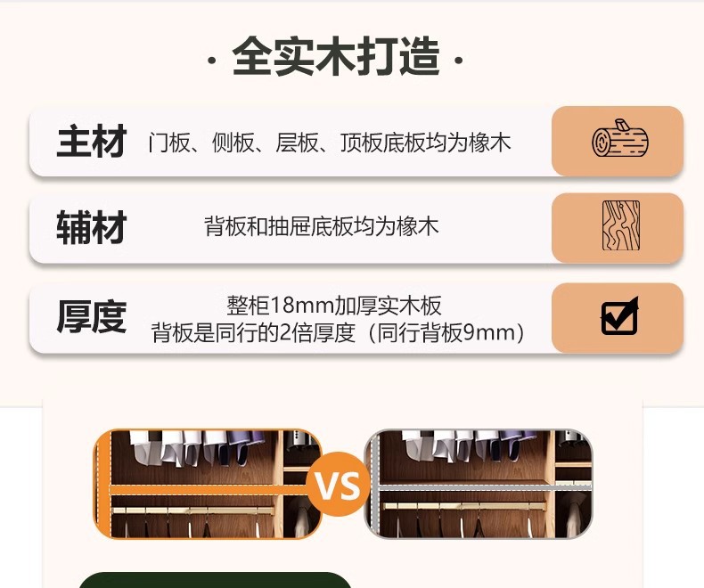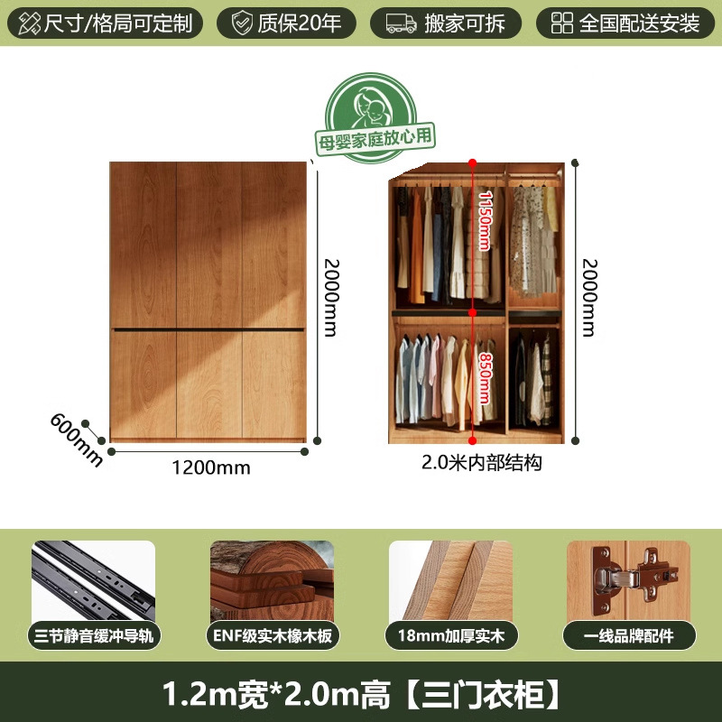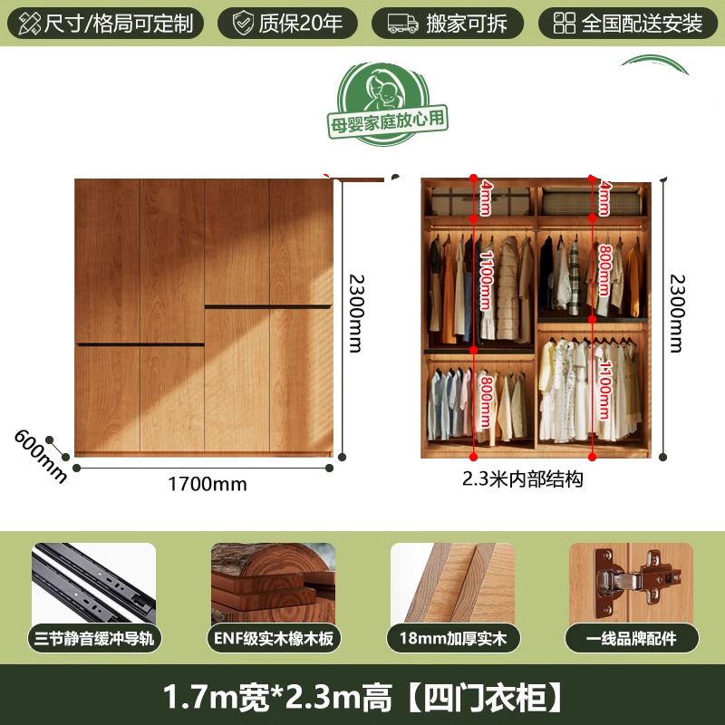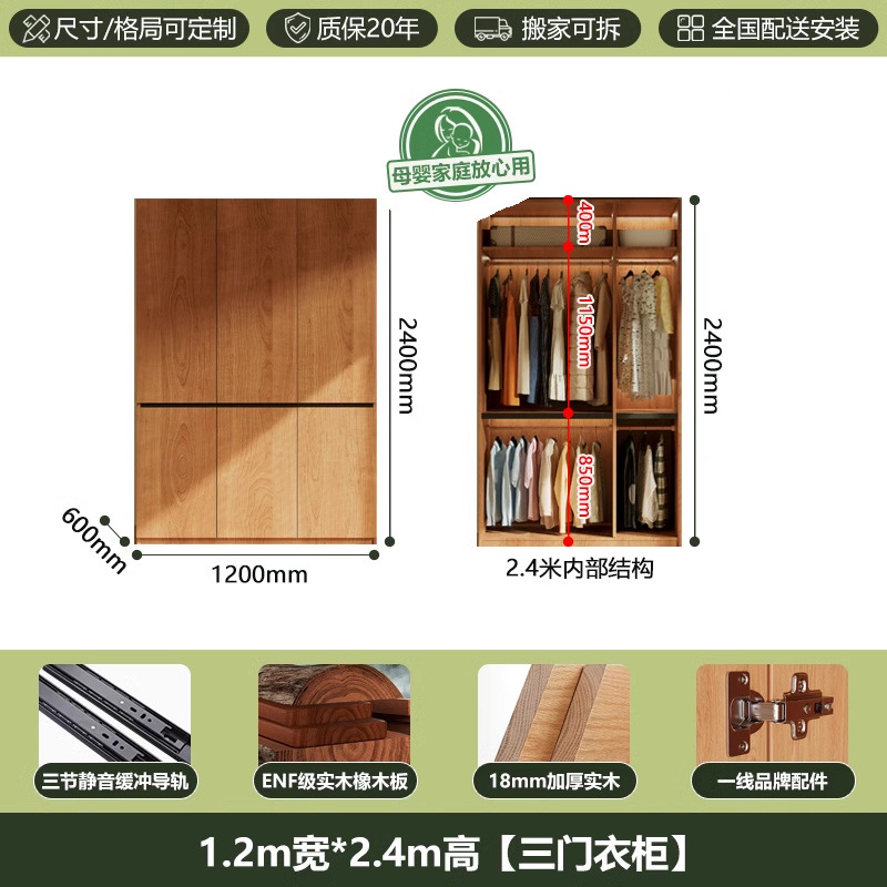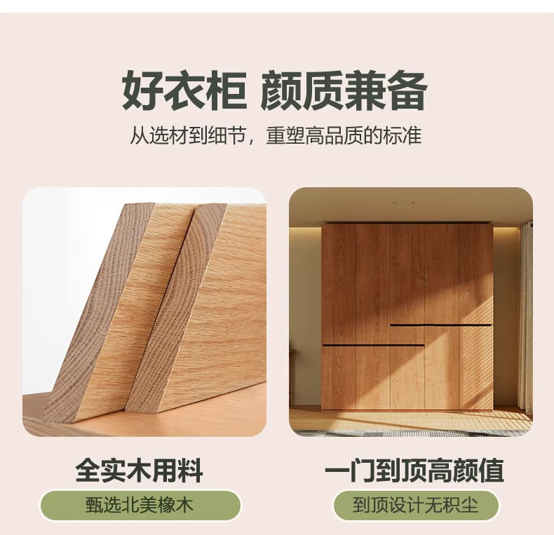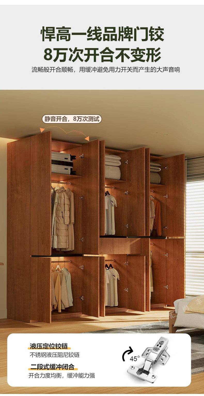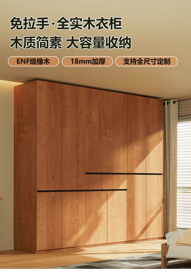 모든 단단한 나무 옷장 오크 로그 스타일 새로운 모든 집 가구 세그먼트 비 손잡이 스윙 도어 북유럽 대형 옷장스토어 가기