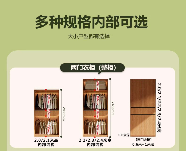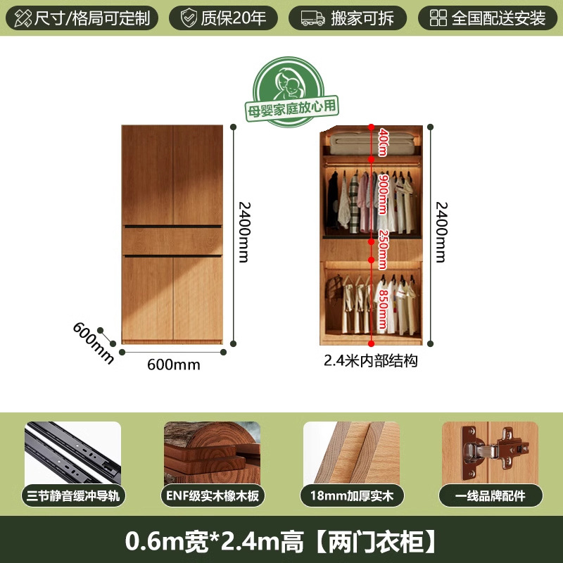 • [길이 0.6m*높이 2.4m] 2도어 옷장 [올 원목]