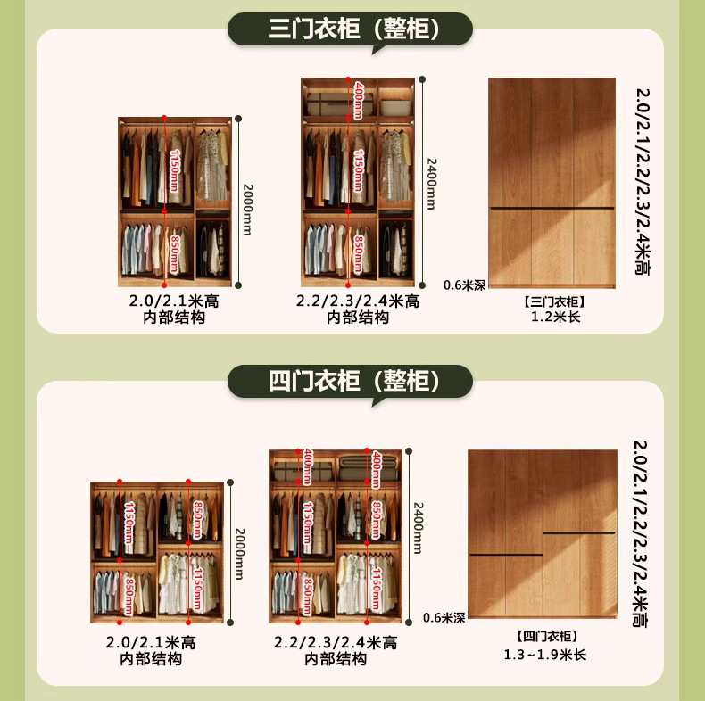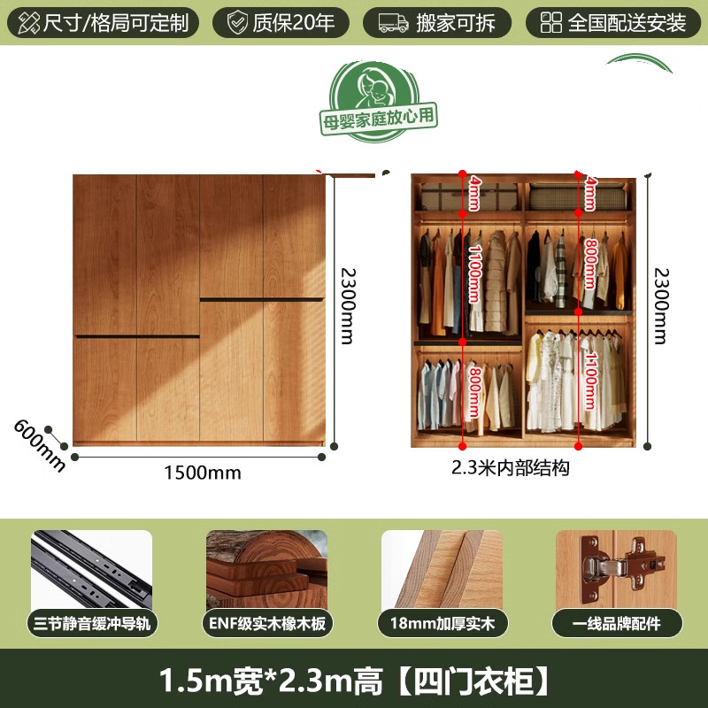 • [길이 1.5m*높이 2.2m] 4도어 옷장 [올 원목]