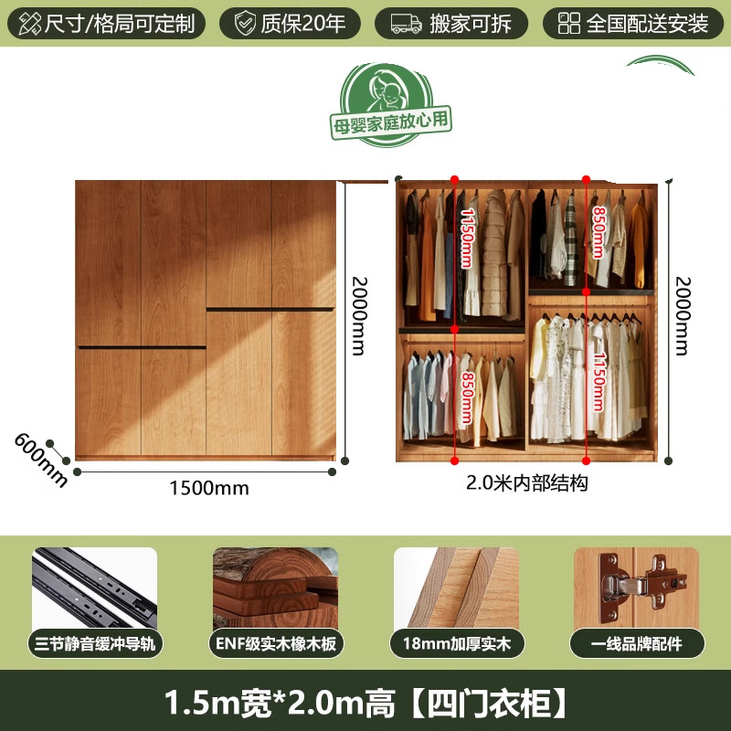 • [길이 1.5m*높이 2.0m] 4도어 옷장 [전체 원목]