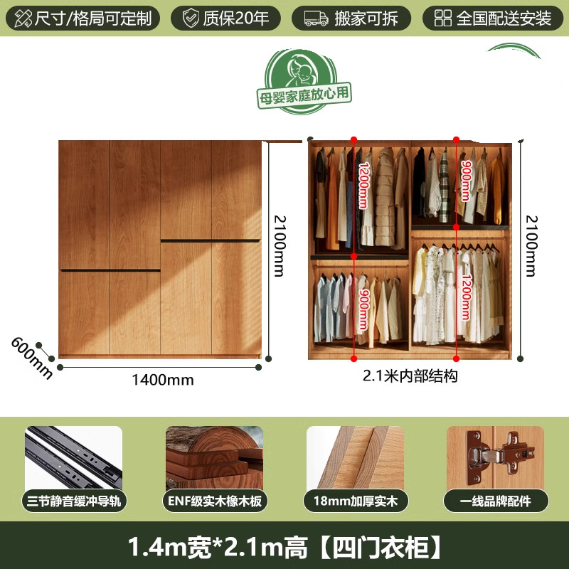 • [길이 1.4m*높이 2.0m] 4도어 옷장 [올 원목]