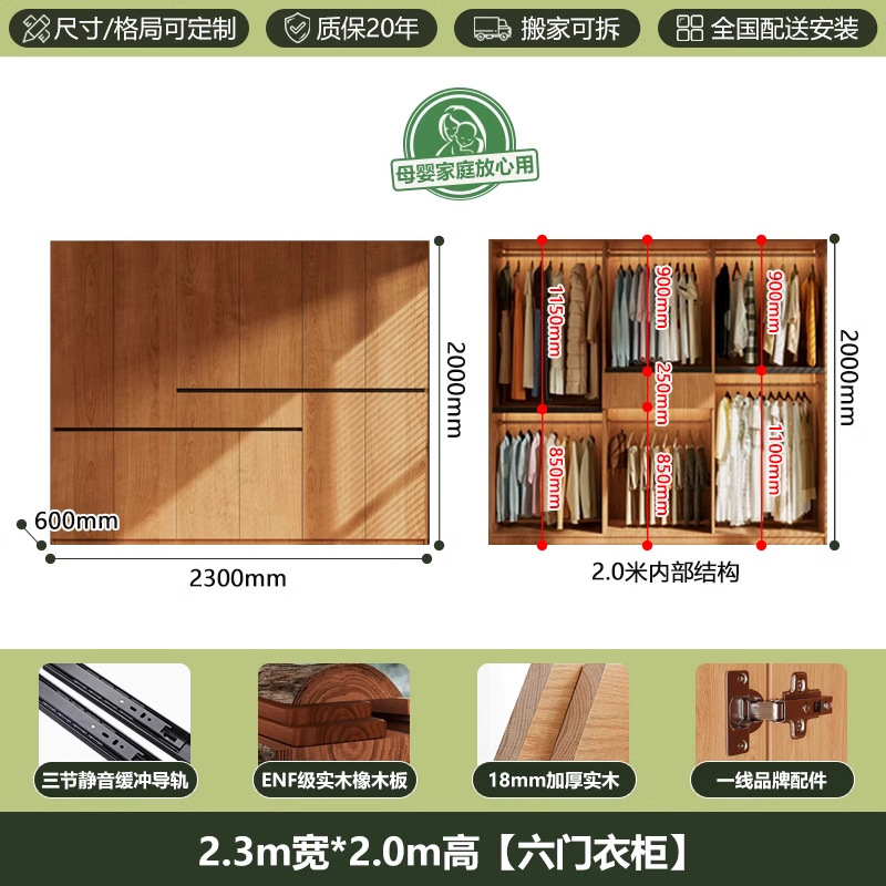 • [길이 2.3m*높이 2.0m] 6도어 옷장 [올 원목]