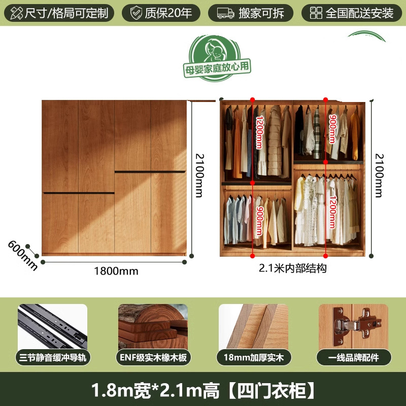 • [길이 1.8m*높이 2.1m] 4도어 옷장 [올 원목]
