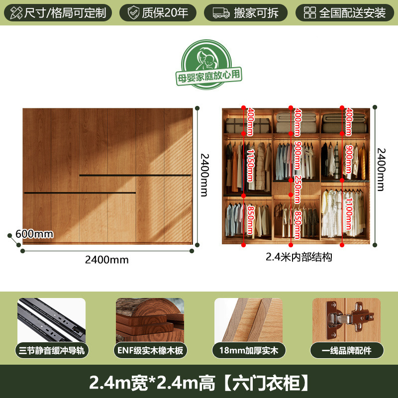 • [길이 2.4m*높이 2.0m] 6도어 옷장 [올 원목]