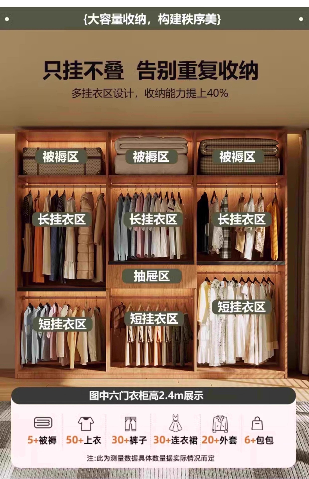 • [길이 2.4m*높이 2.4m] 6도어 옷장 [올 원목]