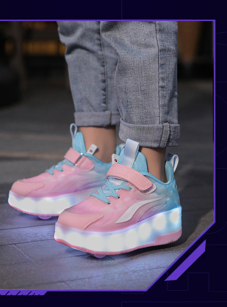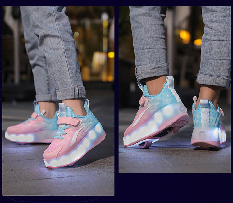 와우 어린이 힐리스 신발 4륜 변형 휠 신발 여학생 2륜 투명 스케이트 신발 소년 힐리스 신발스토어 가기