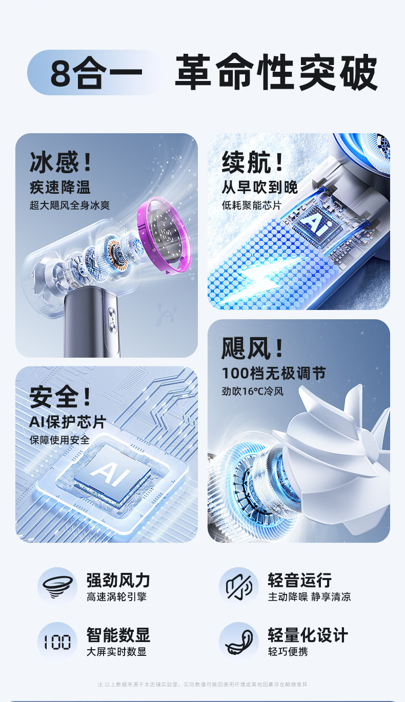 • 【5000M】Pro【다이슨 퍼플】29000회전 얼음 허리케인☆100단계의 급증하는 찬 공기☆지능형 디지털 디스플레이