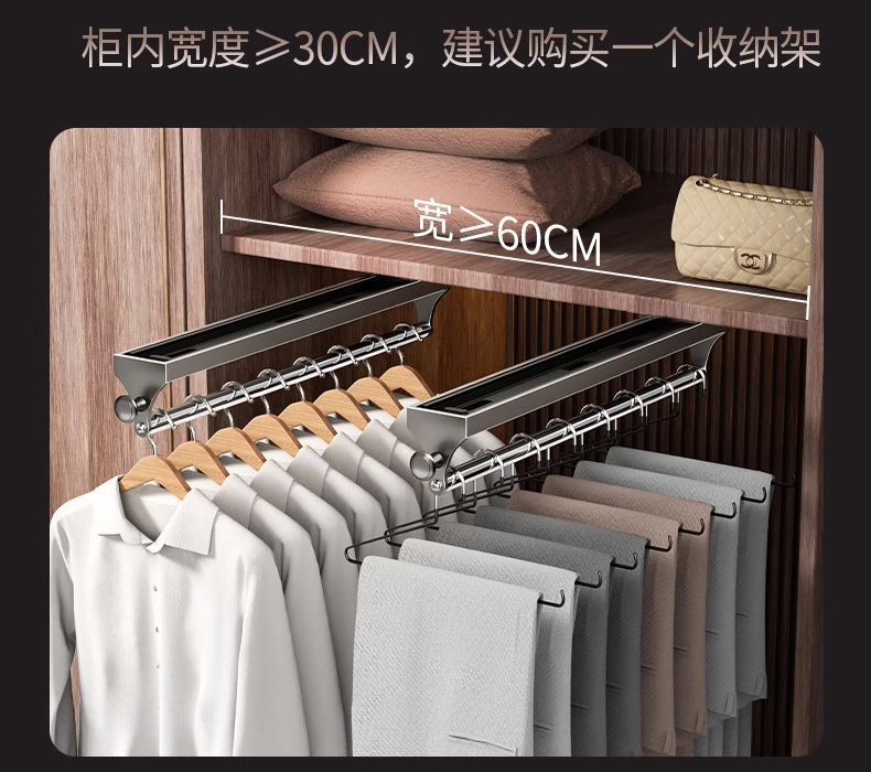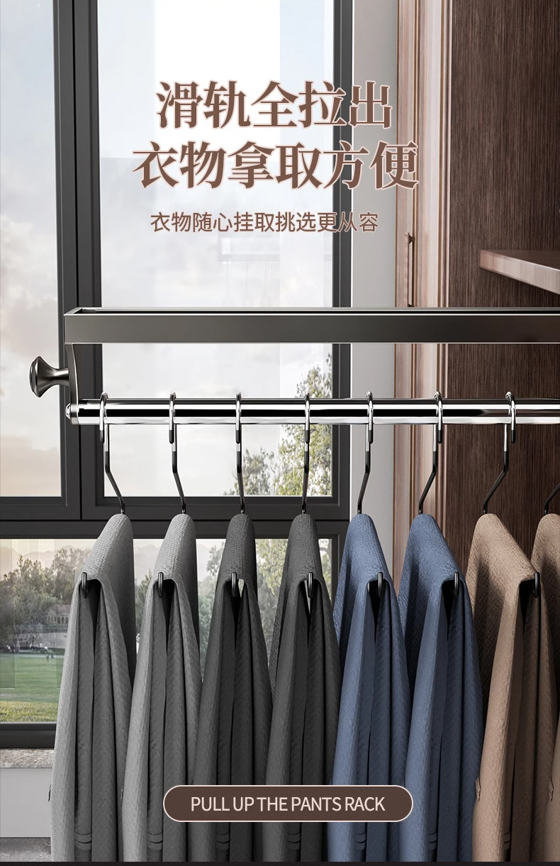 의류 랙 가정용 침실 옷장 내장 슬라이드 레일 텔레스코픽 풀 아웃 행거 바지 트랙 다기능 스토리지 랙