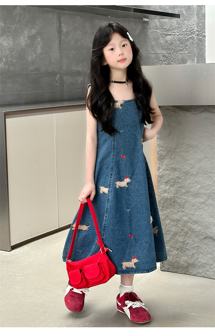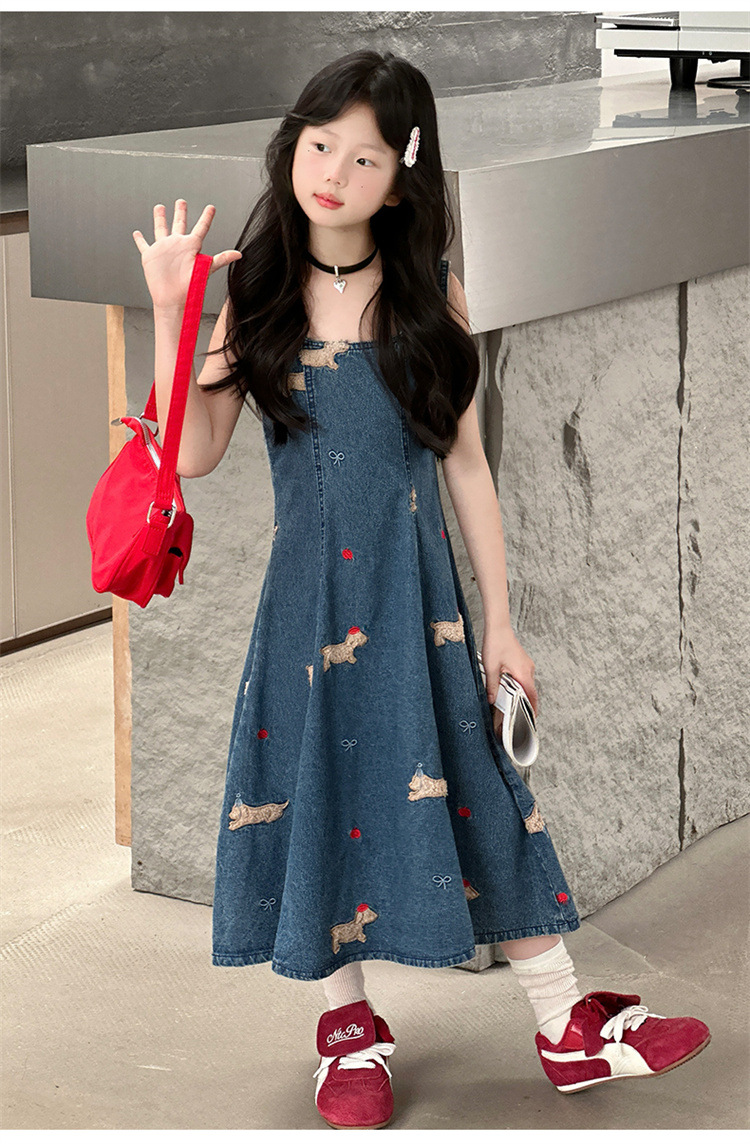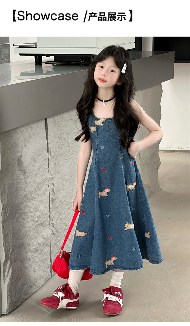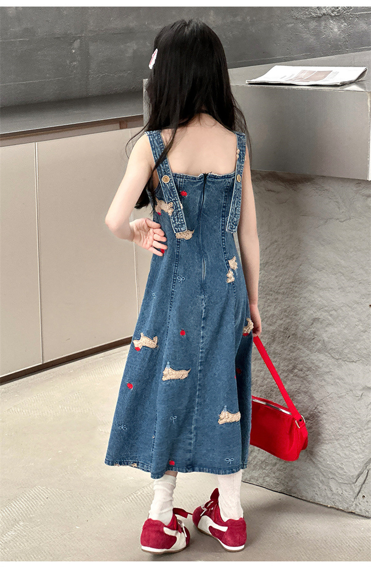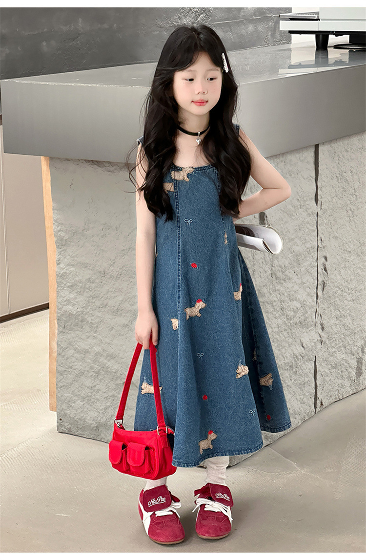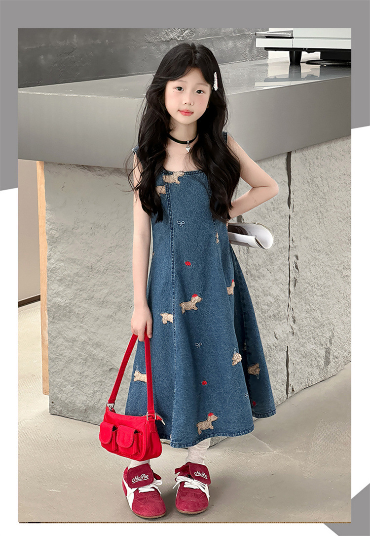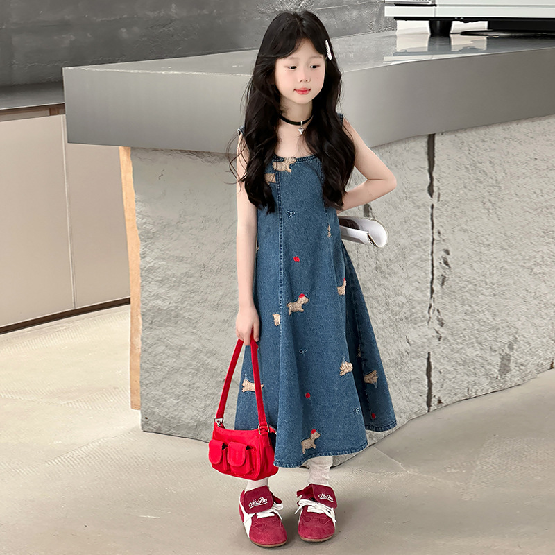 소녀들의 데님 원피스 2025 년 여름 새로운 한국식 슈퍼 잘 생긴 민소매 목 서양식 중년 어린이 하이 엔드 센스스토어 가기
