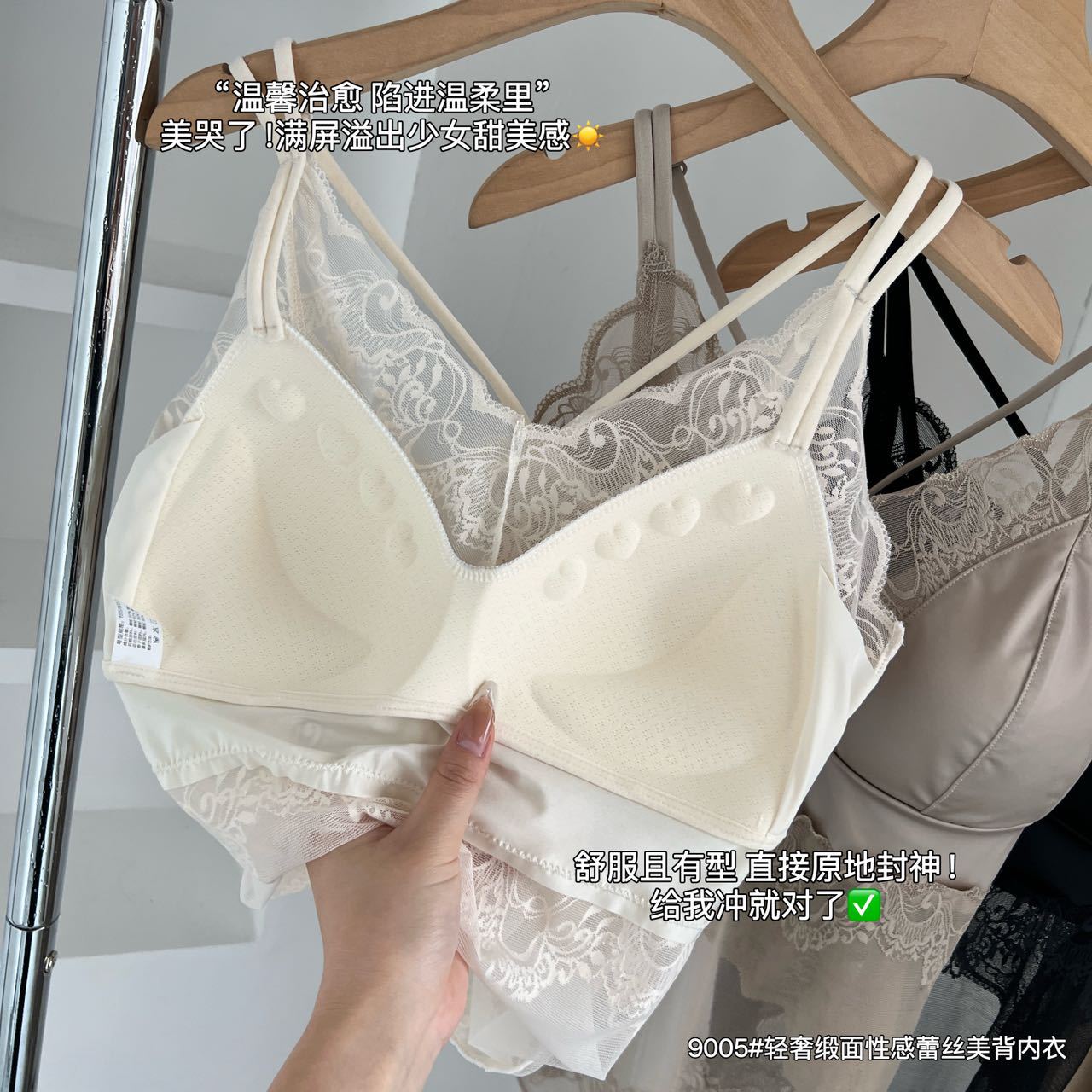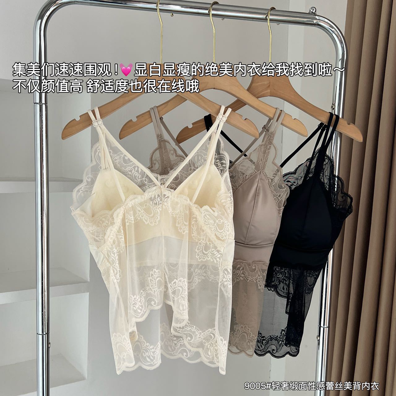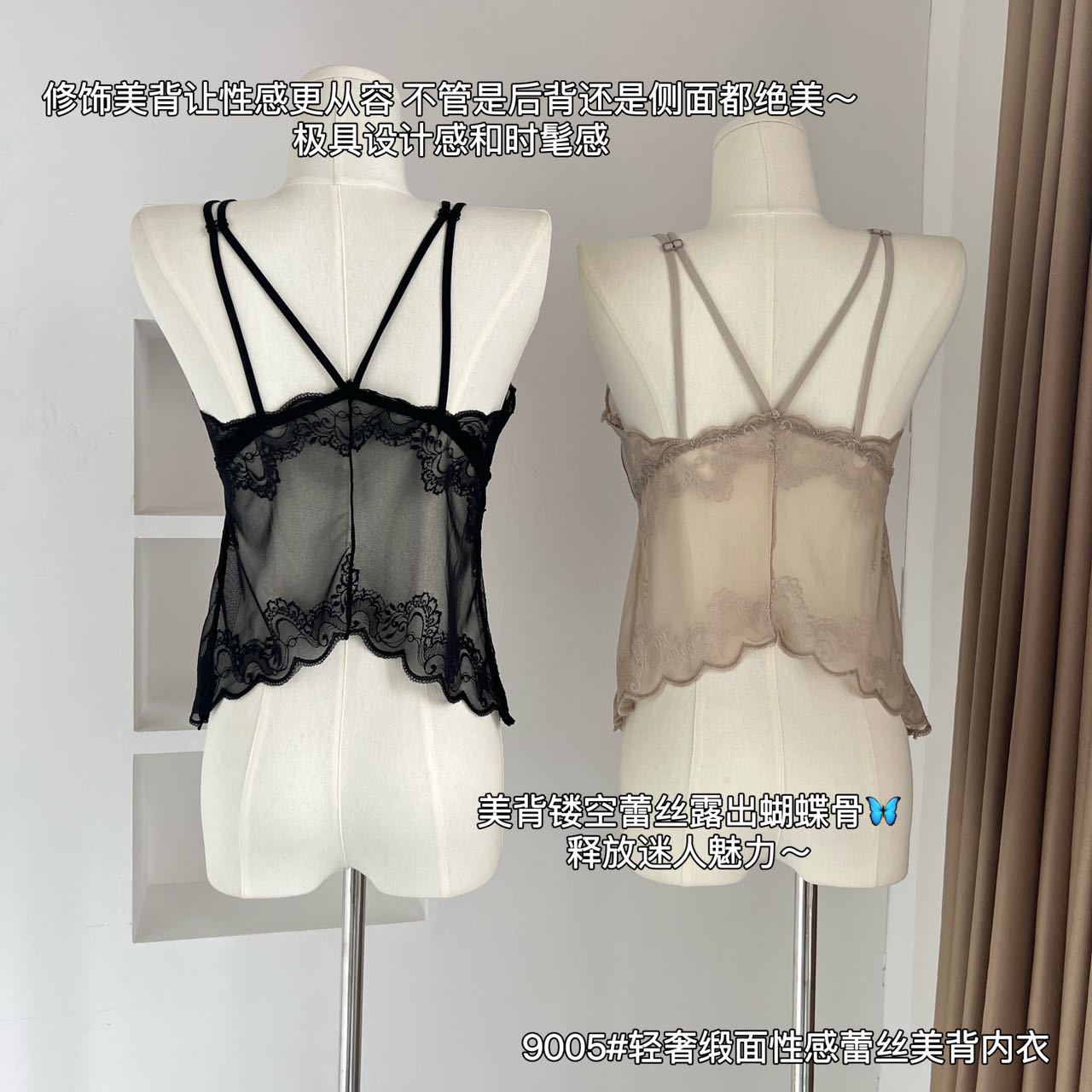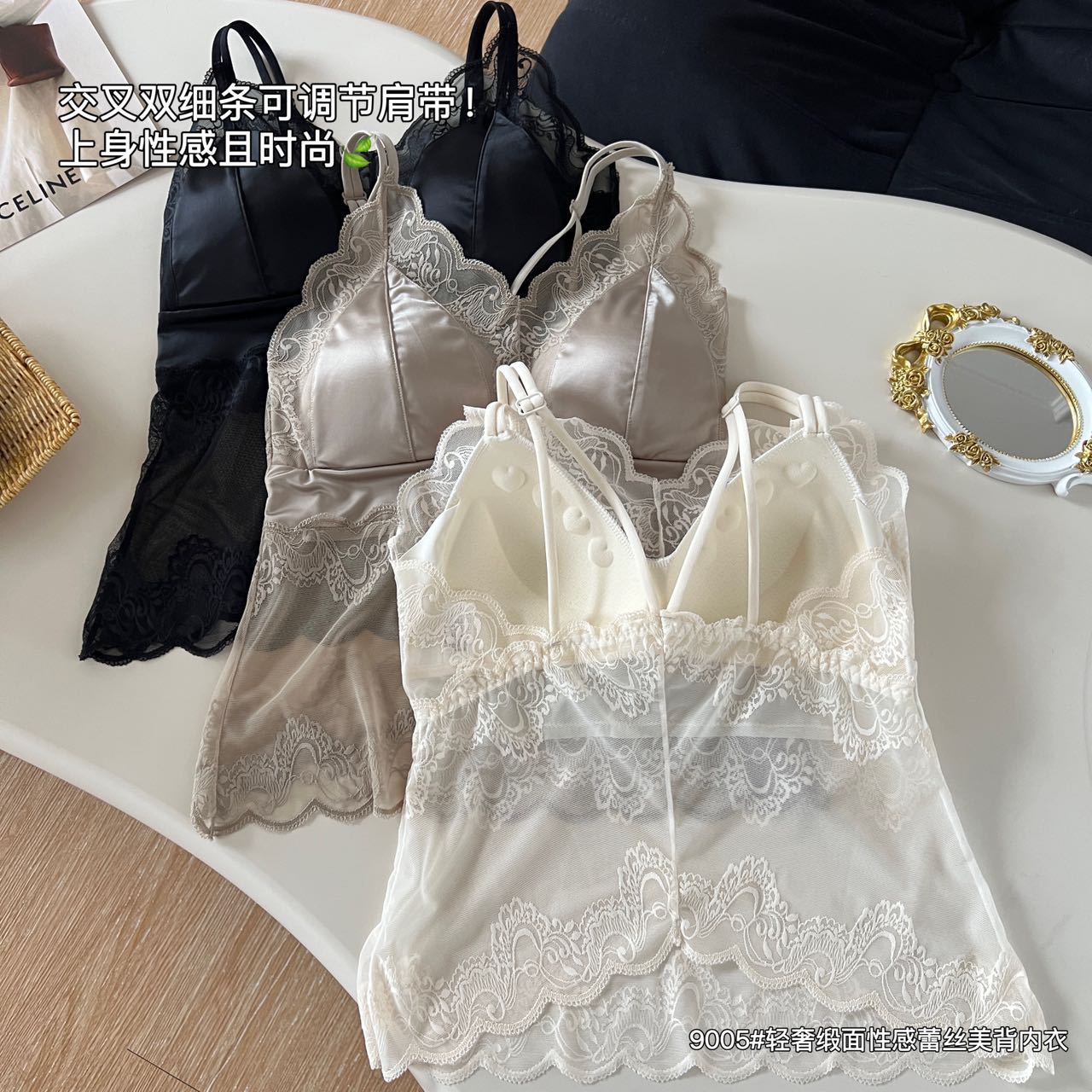 가슴 패드와 바닥 셔츠가 내장된 여름 여성용 가볍고 고급스러운 새틴 섹시한 레이스 아름다운 등 서스펜더