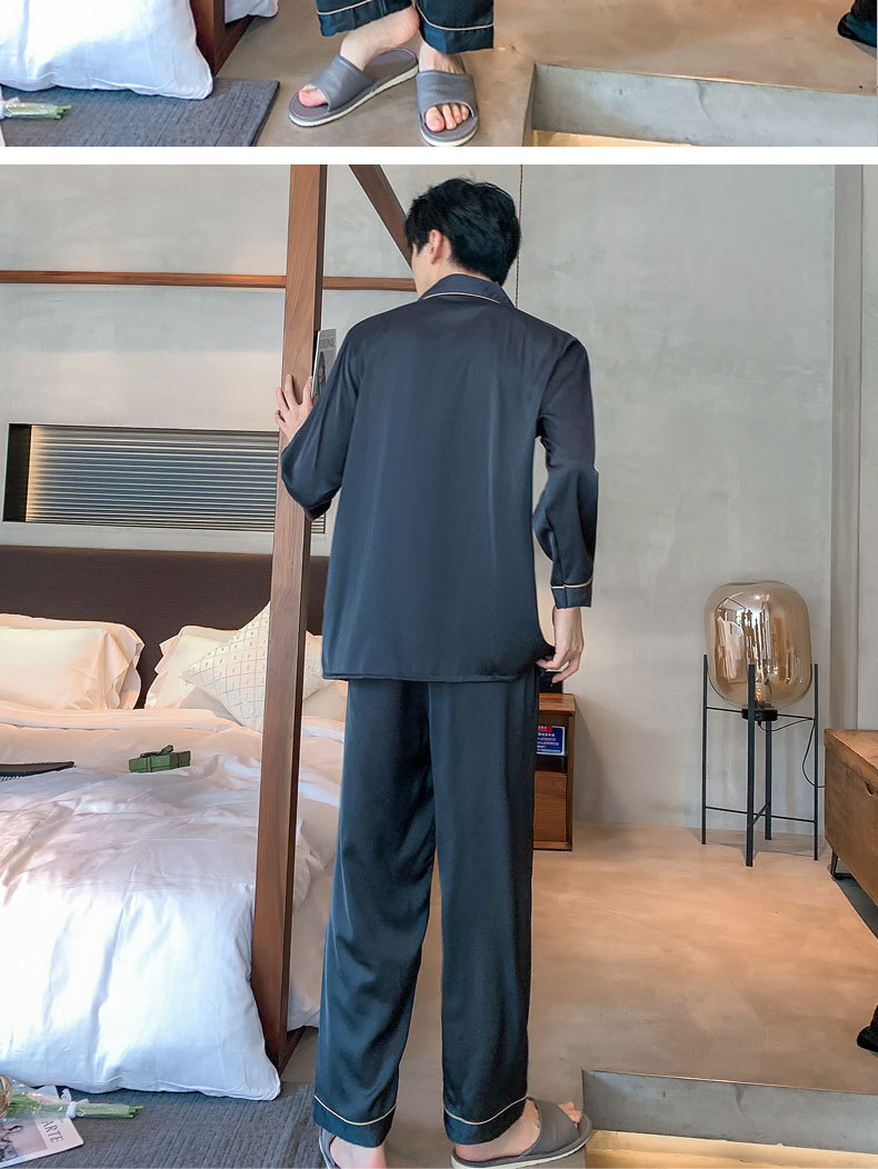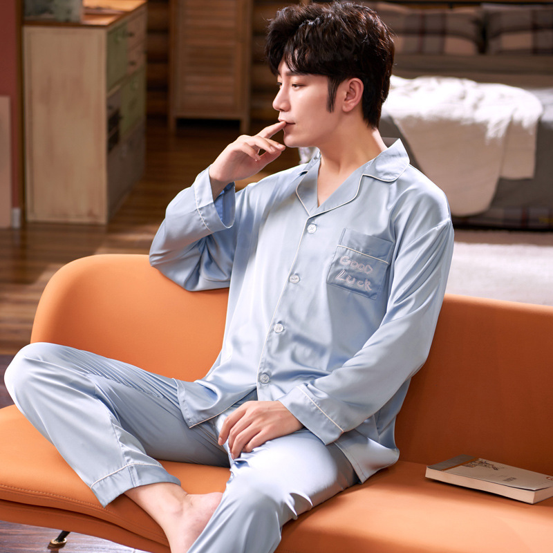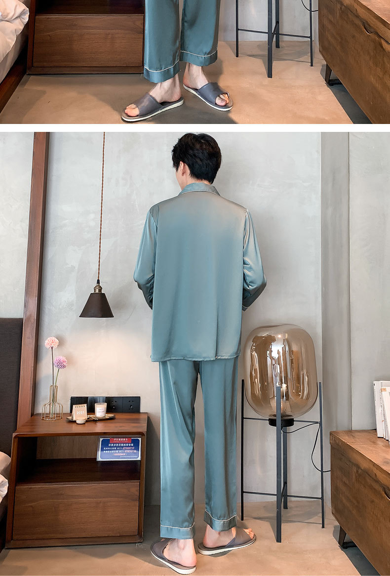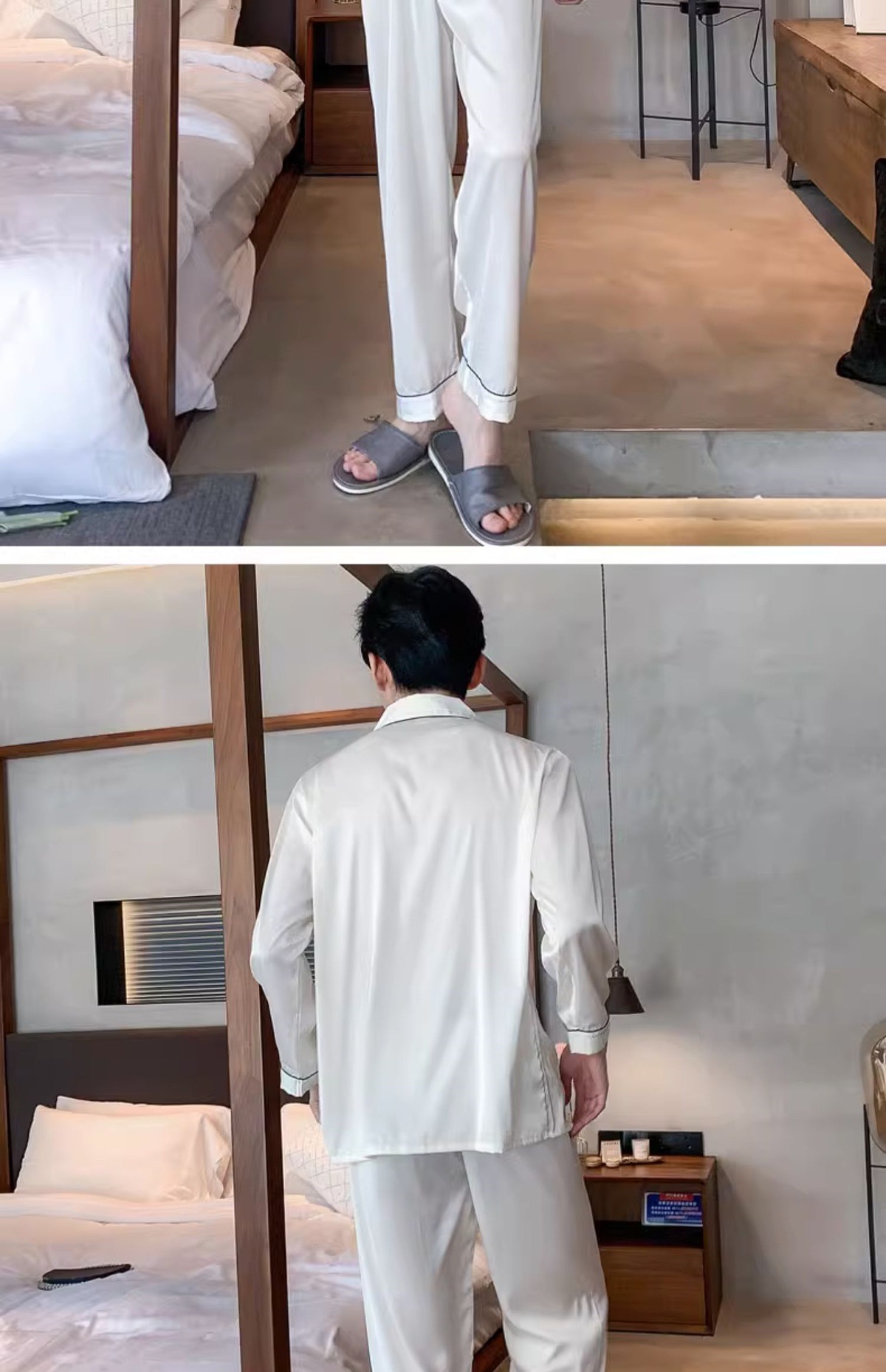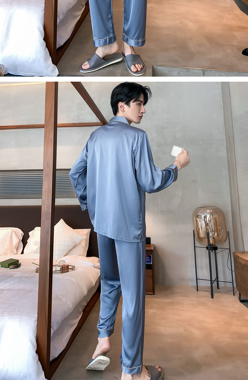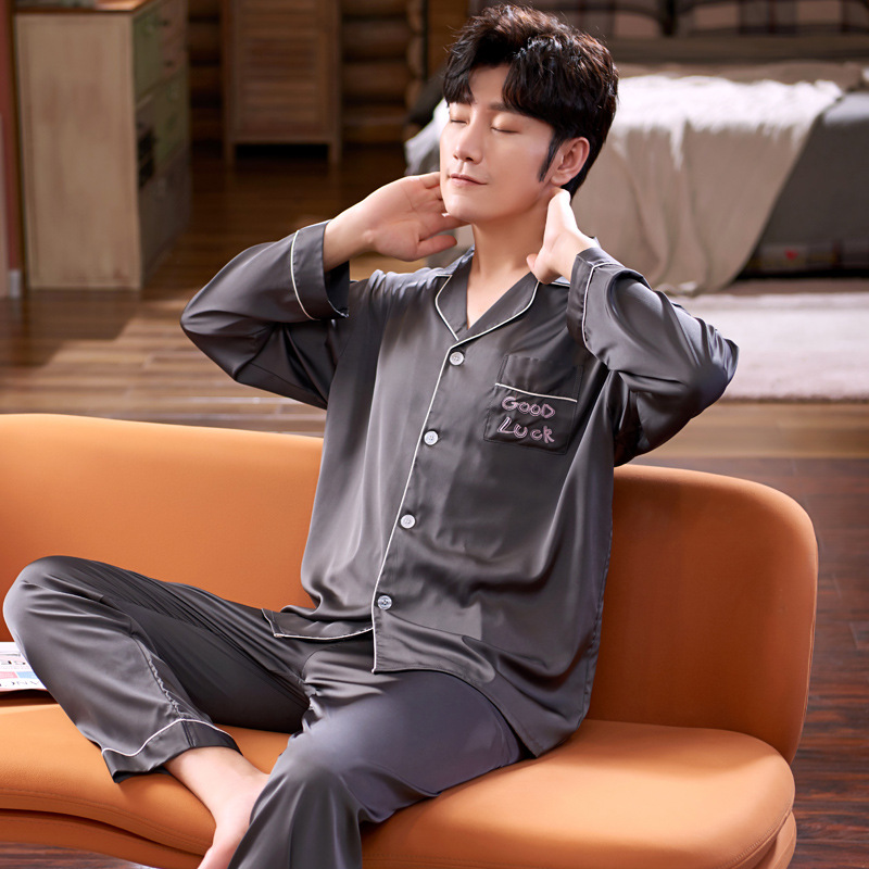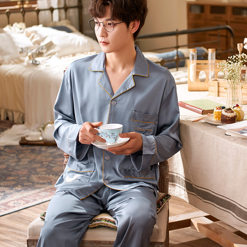 남성용 아이스 실크 잠옷 봄, 가을 긴팔 카디건 시뮬레이션 실크 얇은 2025 새로운 간단한 가정 의류 여름스토어 가기